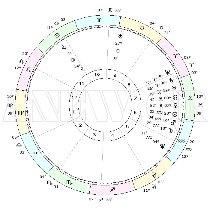 | | ΘΕΣΕΙΣ ΠΛΑΝΗΤΩΝ ΑΣΤΡΟΛΟΓΙΚΟΥ ΧΑΡΤΗ ΤΗΣ ΣΤΙΓΜΗΣ ΑΥΤΗΣ | | | | Πλανήτης | Ζώδιο | Μοίρες | Δεκαήμ. | Σε οίκο | Απόκλιση | | Ακμές των οίκων | | Ηλιος | Υδροχόος | 27°58' | Τρίτο | 7 | 12 S 11 | | 1ος | 21°09' | Λέων | | Σελήνη | Υδροχόος | 17°39' | Δεύτερο | 6 | 17 S 22 | | 2ος | 14°04' | Παρθένος | | Ερμής | Ιχθείς | 15°34' | Δεύτερο | 8 | 05 S 18 | | 3ος | 11°51' | Ζυγός | | Αφροδίτη | Ιχθείς | 07°47' | Πρώτο | 7 | 10 S 00 | | 4ος | 14°33' | Σκορπιός | | Αρης | Υδροχόος | 19°01' | Δεύτερο | 6 | 16 S 09 | | 5ος | 19°23' | Τοξότης | | Δίας | Καρκίνος | 15°54'R | Δεύτερο | 11 | 22 N 49 | | 6ος | 22°09' | Αιγόκερως | | Κρόνος | Κριός | 00°24' | Πρώτο | 8 | 01 S 48 | | 7ος | 21°09' | Υδροχόος | | Ουρανός | Ταύρος | 27°32' | Τρίτο | 10 | 19 N 25 | | 8ος | 14°04' | Ιχθείς | | Ποσειδώνας | Κριός | 00°37' | Πρώτο | 8 | 00 S 57 | | 9ος | 11°51' | Κριός | | Πλούτωνας | Υδροχόος | 04°11' | Πρώτο | 6 | 22 S 56 | | 10ος | 14°33' | Ταύρος | | Β. Δεσμός | Ιχθείς | 09°42' | Πρώτο | 7 | 07 S 56 | | 11ος | 19°23' | Δίδυμοι | | Ωροσκόπος | Λέων | 21°09' | Τρίτο | | | 12ος | 22°09' | Καρκίνος | | Μεσουράνημα | Ταύρος | 14°33' | Δεύτερο | | | |