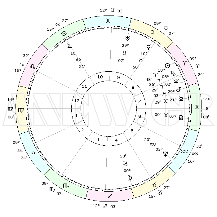 | | ΘΕΣΕΙΣ ΠΛΑΝΗΤΩΝ ΑΣΤΡΟΛΟΓΙΚΟΥ ΧΑΡΤΗ ΤΗΣ ΣΤΙΓΜΗΣ ΑΥΤΗΣ | | | | Πλανήτης | Ζώδιο | Μοίρες | Δεκαήμ. | Σε οίκο | Απόκλιση | | Ακμές των οίκων | | Ηλιος | Κριός | 18°42' | Δεύτερο | 8 | 07 N 19 | | 1ος | 26°54' | Λέων | | Σελήνη | Αιγόκερως | 00°16' | Πρώτο | 5 | 28 S 13 | | 2ος | 20°25' | Παρθένος | | Ερμής | Ιχθείς | 21°25' | Τρίτο | 8 | 05 S 27 | | 3ος | 18°48' | Ζυγός | | Αφροδίτη | Ταύρος | 10°54' | Δεύτερο | 9 | 14 N 59 | | 4ος | 21°40' | Σκορπιός | | Αρης | Ιχθείς | 29°00' | Τρίτο | 8 | 01 S 20 | | 5ος | 26°04' | Τοξότης | | Δίας | Καρκίνος | 16°21' | Δεύτερο | 11 | 22 N 48 | | 6ος | 28°17' | Αιγόκερως | | Κρόνος | Κριός | 06°36' | Πρώτο | 8 | 00 N 39 | | 7ος | 26°54' | Υδροχόος | | Ουρανός | Ταύρος | 29°06' | Τρίτο | 10 | 19 N 47 | | 8ος | 20°25' | Ιχθείς | | Ποσειδώνας | Κριός | 02°29' | Πρώτο | 8 | 00 S 13 | | 9ος | 18°48' | Κριός | | Πλούτωνας | Υδροχόος | 05°20' | Πρώτο | 6 | 22 S 47 | | 10ος | 21°40' | Ταύρος | | Β. Δεσμός | Ιχθείς | 07°00' | Πρώτο | 7 | 08 S 56 | | 11ος | 26°05' | Δίδυμοι | | Ωροσκόπος | Λέων | 26°54' | Τρίτο | | | 12ος | 28°17' | Καρκίνος | | Μεσουράνημα | Ταύρος | 21°40' | Τρίτο | | | |