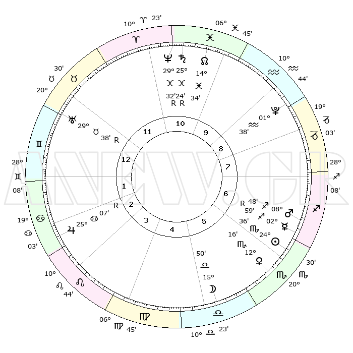 | | ΘΕΣΕΙΣ ΠΛΑΝΗΤΩΝ ΑΣΤΡΟΛΟΓΙΚΟΥ ΧΑΡΤΗ ΤΗΣ ΣΤΙΓΜΗΣ ΑΥΤΗΣ | | | | Πλανήτης | Ζώδιο | Μοίρες | Δεκαήμ. | Σε οίκο | Απόκλιση | | Ακμές των οίκων | | Ηλιος | Σκορπιός | 24°31' | Τρίτο | 7 | 18 S 54 | | 1ος | 22°40' | Ταύρος | | Σελήνη | Ζυγός | 14°44' | Δεύτερο | 6 | 08 S 03 | | 2ος | 19°03' | Δίδυμοι | | Ερμής | Τοξότης | 03°05'R | Πρώτο | 7 | 21 S 29 | | 3ος | 10°48' | Καρκίνος | | Αφροδίτη | Σκορπιός | 12°09' | Δεύτερο | 6 | 14 S 22 | | 4ος | 03°06' | Λέων | | Αρης | Τοξότης | 08°44' | Πρώτο | 7 | 22 S 17 | | 5ος | 00°22' | Παρθένος | | Δίας | Καρκίνος | 25°07'R | Τρίτο | 3 | 21 N 14 | | 6ος | 07°33' | Ζυγός | | Κρόνος | Ιχθείς | 25°24'R | Τρίτο | 11 | 04 S 03 | | 7ος | 22°40' | Σκορπιός | | Ουρανός | Ταύρος | 29°39'R | Τρίτο | 1 | 19 N 52 | | 8ος | 19°03' | Τοξότης | | Ποσειδώνας | Ιχθείς | 29°32'R | Τρίτο | 11 | 01 S 26 | | 9ος | 10°48' | Αιγόκερως | | Πλούτωνας | Υδροχόος | 01°38' | Πρώτο | 9 | 23 S 28 | | 10ος | 03°06' | Υδροχόος | | Β. Δεσμός | Ιχθείς | 14°34' | Δεύτερο | 11 | 06 S 04 | | 11ος | 00°22' | Ιχθείς | | Ωροσκόπος | Ταύρος | 22°40' | Τρίτο | | | 12ος | 07°33' | Κριός | | Μεσουράνημα | Υδροχόος | 03°06' | Πρώτο | | | |