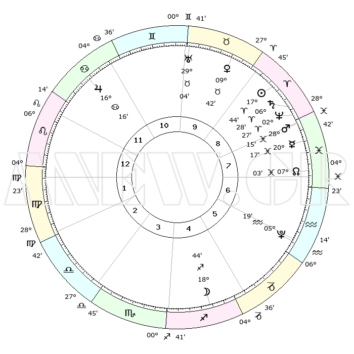 | | ΘΕΣΕΙΣ ΠΛΑΝΗΤΩΝ ΑΣΤΡΟΛΟΓΙΚΟΥ ΧΑΡΤΗ ΤΗΣ ΣΤΙΓΜΗΣ ΑΥΤΗΣ | | | | Πλανήτης | Ζώδιο | Μοίρες | Δεκαήμ. | Σε οίκο | Απόκλιση | | Ακμές των οίκων | | Ηλιος | Κριός | 17°40' | Δεύτερο | 9 | 06 N 56 | | 1ος | 14°38' | Λέων | | Σελήνη | Τοξότης | 17°56' | Δεύτερο | 5 | 27 S 57 | | 2ος | 06°54' | Παρθένος | | Ερμής | Ιχθείς | 20°12' | Τρίτο | 8 | 05 S 50 | | 3ος | 03°54' | Ζυγός | | Αφροδίτη | Ταύρος | 09°37' | Πρώτο | 10 | 14 N 32 | | 4ος | 06°18' | Σκορπιός | | Αρης | Ιχθείς | 28°12' | Τρίτο | 8 | 01 S 39 | | 5ος | 11°36' | Τοξότης | | Δίας | Καρκίνος | 16°16' | Δεύτερο | 12 | 22 N 49 | | 6ος | 15°07' | Αιγόκερως | | Κρόνος | Κριός | 06°28' | Πρώτο | 9 | 00 N 36 | | 7ος | 14°38' | Υδροχόος | | Ουρανός | Ταύρος | 29°03' | Τρίτο | 10 | 19 N 47 | | 8ος | 06°54' | Ιχθείς | | Ποσειδώνας | Κριός | 02°27' | Πρώτο | 8 | 00 S 14 | | 9ος | 03°54' | Κριός | | Πλούτωνας | Υδροχόος | 05°19' | Πρώτο | 6 | 22 S 47 | | 10ος | 06°18' | Ταύρος | | Β. Δεσμός | Ιχθείς | 07°04' | Πρώτο | 8 | 08 S 55 | | 11ος | 11°36' | Δίδυμοι | | Ωροσκόπος | Λέων | 14°38' | Δεύτερο | | | 12ος | 15°07' | Καρκίνος | | Μεσουράνημα | Ταύρος | 06°18' | Πρώτο | | | |