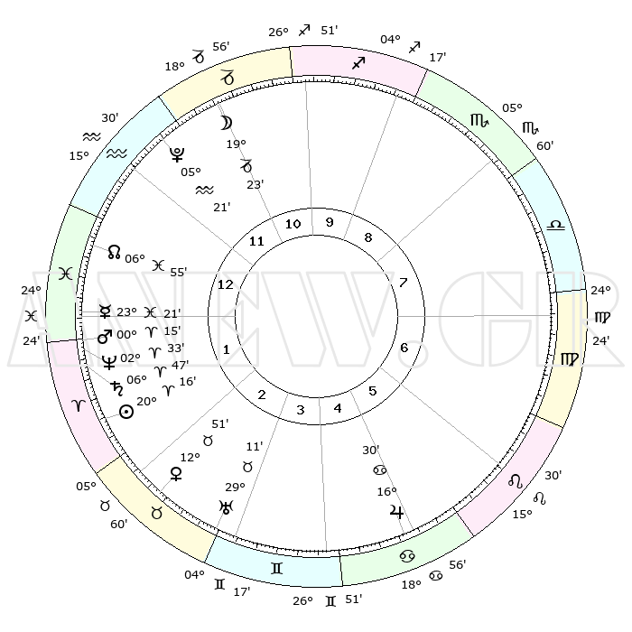| | ΘΕΣΕΙΣ ΠΛΑΝΗΤΩΝ ΑΣΤΡΟΛΟΓΙΚΟΥ ΧΑΡΤΗ ΤΗΣ ΣΤΙΓΜΗΣ ΑΥΤΗΣ | | | | Πλανήτης | Ζώδιο | Μοίρες | Δεκαήμ. | Σε οίκο | Απόκλιση | | Ακμές των οίκων | | Ηλιος | Κριός | 20°11' | Τρίτο | 2 | 07 N 53 | | 1ος | 11°22' | Υδροχόος | | Σελήνη | Αιγόκερως | 18°25' | Δεύτερο | 12 | 26 S 04 | | 2ος | 26°50' | Ιχθείς | | Ερμής | Ιχθείς | 23°15' | Τρίτο | 1 | 04 S 50 | | 3ος | 03°16' | Ταύρος | | Αφροδίτη | Ταύρος | 12°46' | Δεύτερο | 3 | 15 N 37 | | 4ος | 29°56' | Ταύρος | | Αρης | Κριός | 00°11'R | Πρώτο | 2 | 00 S 51 | | 5ος | 22°02' | Δίδυμοι | | Δίας | Καρκίνος | 16°29' | Δεύτερο | 6 | 22 N 47 | | 6ος | 14°01' | Καρκίνος | | Κρόνος | Κριός | 06°47' | Πρώτο | 2 | 00 N 44 | | 7ος | 11°22' | Λέων | | Ουρανός | Ταύρος | 29°11' | Τρίτο | 3 | 19 N 48 | | 8ος | 26°50' | Παρθένος | | Ποσειδώνας | Κριός | 02°33' | Πρώτο | 2 | 00 S 11 | | 9ος | 03°16' | Σκορπιός | | Πλούτωνας | Υδροχόος | 05°21' | Πρώτο | 12 | 22 S 47 | | 10ος | 29°56' | Σκορπιός | | Β. Δεσμός | Ιχθείς | 06°55' | Πρώτο | 1 | 08 S 58 | | 11ος | 22°02' | Τοξότης | | Ωροσκόπος | Υδροχόος | 11°22' | Δεύτερο | | | 12ος | 14°01' | Αιγόκερως | | Μεσουράνημα | Σκορπιός | 29°56' | Τρίτο | | | |
