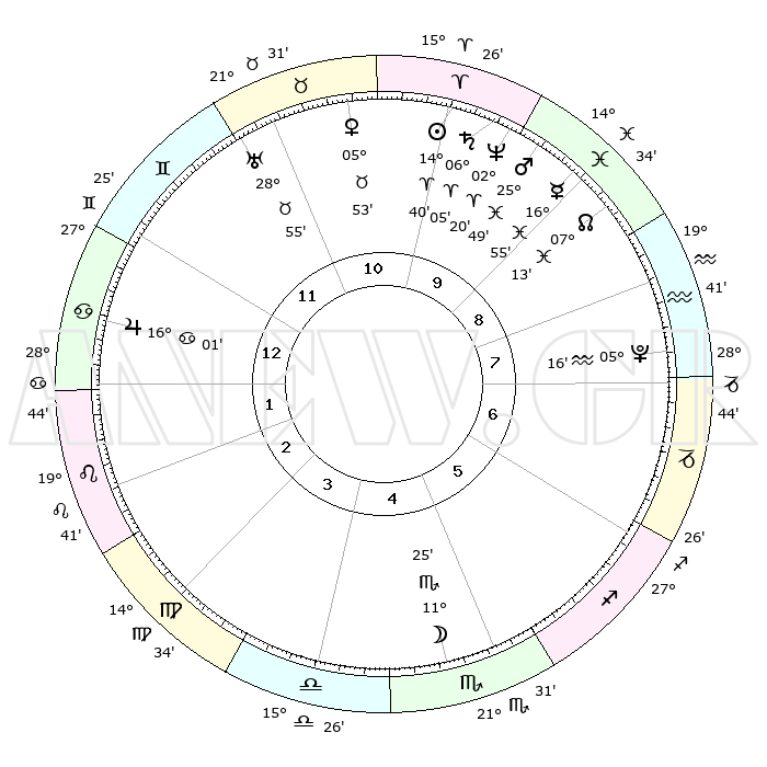 | | ΘΕΣΕΙΣ ΠΛΑΝΗΤΩΝ ΑΣΤΡΟΛΟΓΙΚΟΥ ΧΑΡΤΗ ΤΗΣ ΣΤΙΓΜΗΣ ΑΥΤΗΣ | | | | Πλανήτης | Ζώδιο | Μοίρες | Δεκαήμ. | Σε οίκο | Απόκλιση | | Ακμές των οίκων | | Ηλιος | Κριός | 14°37' | Δεύτερο | 10 | 05 N 45 | | 1ος | 10°08' | Καρκίνος | | Σελήνη | Σκορπιός | 10°39' | Δεύτερο | 5 | 19 S 21 | | 2ος | 00°34' | Λέων | | Ερμής | Ιχθείς | 16°51' | Δεύτερο | 9 | 06 S 50 | | 3ος | 23°12' | Λέων | | Αφροδίτη | Ταύρος | 05°48' | Πρώτο | 11 | 13 N 10 | | 4ος | 21°11' | Παρθένος | | Αρης | Ιχθείς | 25°46' | Τρίτο | 10 | 02 S 38 | | 5ος | 26°29' | Ζυγός | | Δίας | Καρκίνος | 16°01' | Δεύτερο | 1 | 22 N 51 | | 6ος | 05°24' | Τοξότης | | Κρόνος | Κριός | 06°05' | Πρώτο | 10 | 00 N 27 | | 7ος | 10°08' | Αιγόκερως | | Ουρανός | Ταύρος | 28°55' | Τρίτο | 11 | 19 N 45 | | 8ος | 00°34' | Υδροχόος | | Ποσειδώνας | Κριός | 02°20' | Πρώτο | 10 | 00 S 16 | | 9ος | 23°12' | Υδροχόος | | Πλούτωνας | Υδροχόος | 05°16' | Πρώτο | 8 | 22 S 47 | | 10ος | 21°11' | Ιχθείς | | Β. Δεσμός | Ιχθείς | 07°14' | Πρώτο | 9 | 08 S 51 | | 11ος | 26°29' | Κριός | | Ωροσκόπος | Καρκίνος | 10°08' | Δεύτερο | | | 12ος | 05°24' | Δίδυμοι | | Μεσουράνημα | Ιχθείς | 21°11' | Τρίτο | | | |