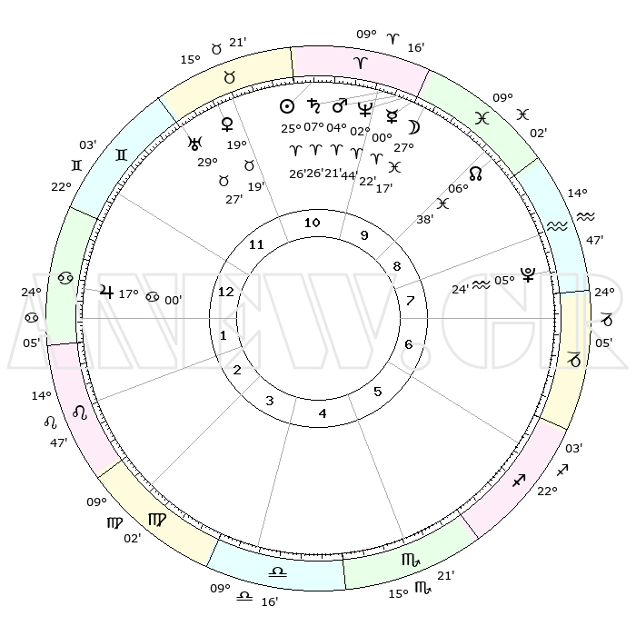 | | ΘΕΣΕΙΣ ΠΛΑΝΗΤΩΝ ΑΣΤΡΟΛΟΓΙΚΟΥ ΧΑΡΤΗ ΤΗΣ ΣΤΙΓΜΗΣ ΑΥΤΗΣ | | | | Πλανήτης | Ζώδιο | Μοίρες | Δεκαήμ. | Σε οίκο | Απόκλιση | | Ακμές των οίκων | | Ηλιος | Κριός | 25°21' | Τρίτο | 11 | 09 N 48 | | 1ος | 29°01' | Δίδυμοι | | Σελήνη | Ιχθείς | 26°10' | Τρίτο | 10 | 00 S 04 | | 2ος | 19°52' | Καρκίνος | | Ερμής | Κριός | 00°15'R | Πρώτο | 10 | 02 S 17 | | 3ος | 11°36' | Λέων | | Αφροδίτη | Ταύρος | 19°13' | Δεύτερο | 11 | 17 N 42 | | 4ος | 07°46' | Παρθένος | | Αρης | Κριός | 04°17' | Πρώτο | 10 | 00 N 48 | | 5ος | 11°32' | Ζυγός | | Δίας | Καρκίνος | 16°60' | Δεύτερο | 1 | 22 N 44 | | 6ος | 21°36' | Σκορπιός | | Κρόνος | Κριός | 07°25' | Πρώτο | 10 | 00 N 58 | | 7ος | 29°01' | Τοξότης | | Ουρανός | Ταύρος | 29°26' | Τρίτο | 12 | 19 N 52 | | 8ος | 19°52' | Αιγόκερως | | Ποσειδώνας | Κριός | 02°44' | Πρώτο | 10 | 00 S 07 | | 9ος | 11°36' | Υδροχόος | | Πλούτωνας | Υδροχόος | 05°24' | Πρώτο | 8 | 22 S 47 | | 10ος | 07°46' | Ιχθείς | | Β. Δεσμός | Ιχθείς | 06°39' | Πρώτο | 9 | 09 S 04 | | 11ος | 11°32' | Κριός | | Ωροσκόπος | Δίδυμοι | 29°01' | Τρίτο | | | 12ος | 21°36' | Ταύρος | | Μεσουράνημα | Ιχθείς | 07°46' | Πρώτο | | | |