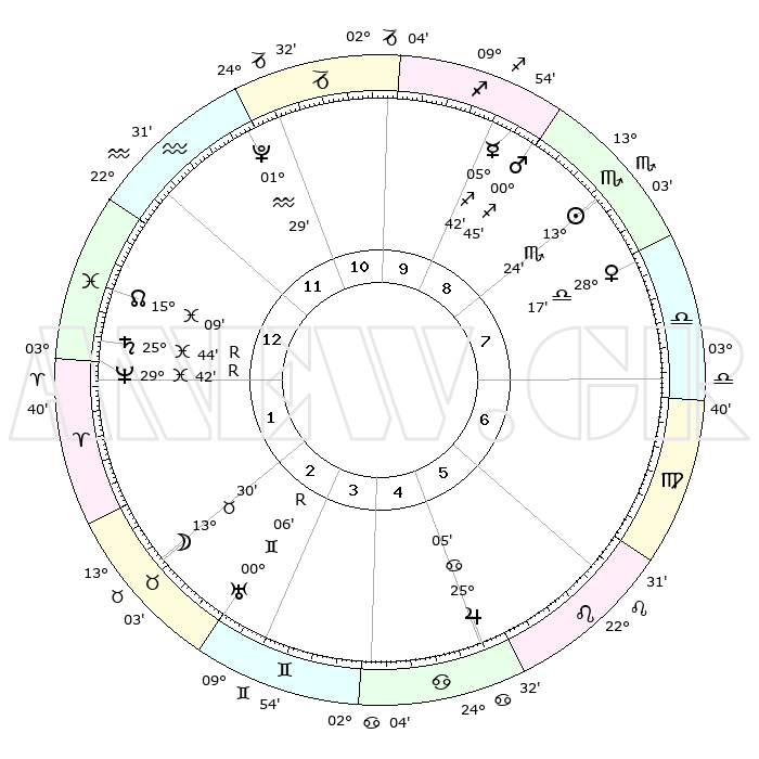 | | ΘΕΣΕΙΣ ΠΛΑΝΗΤΩΝ ΑΣΤΡΟΛΟΓΙΚΟΥ ΧΑΡΤΗ ΤΗΣ ΣΤΙΓΜΗΣ ΑΥΤΗΣ | | | | Πλανήτης | Ζώδιο | Μοίρες | Δεκαήμ. | Σε οίκο | Απόκλιση | | Ακμές των οίκων | | Ηλιος | Σκορπιός | 13°17' | Δεύτερο | 9 | 15 S 49 | | 1ος | 05°12' | Υδροχόος | | Σελήνη | Ταύρος | 11°50' | Δεύτερο | 3 | 19 N 21 | | 2ος | 20°04' | Ιχθείς | | Ερμής | Τοξότης | 05°38' | Πρώτο | 10 | 23 S 59 | | 3ος | 27°38' | Κριός | | Αφροδίτη | Ζυγός | 28°09' | Τρίτο | 9 | 09 S 30 | | 4ος | 25°14' | Ταύρος | | Αρης | Τοξότης | 00°40' | Πρώτο | 10 | 20 S 43 | | 5ος | 17°39' | Δίδυμοι | | Δίας | Καρκίνος | 25°05' | Τρίτο | 6 | 21 N 12 | | 6ος | 09°17' | Καρκίνος | | Κρόνος | Ιχθείς | 25°44'R | Τρίτο | 2 | 03 S 57 | | 7ος | 05°12' | Λέων | | Ουρανός | Δίδυμοι | 00°06'R | Πρώτο | 4 | 19 N 58 | | 8ος | 20°04' | Παρθένος | | Ποσειδώνας | Ιχθείς | 29°42'R | Τρίτο | 2 | 01 S 22 | | 9ος | 27°38' | Ζυγός | | Πλούτωνας | Υδροχόος | 01°29' | Πρώτο | 12 | 23 S 30 | | 10ος | 25°14' | Σκορπιός | | Β. Δεσμός | Ιχθείς | 15°10' | Δεύτερο | 1 | 05 S 51 | | 11ος | 17°39' | Τοξότης | | Ωροσκόπος | Υδροχόος | 05°12' | Πρώτο | | | 12ος | 09°17' | Αιγόκερως | | Μεσουράνημα | Σκορπιός | 25°14' | Τρίτο | | | |