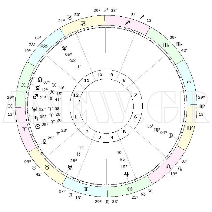 | | ΘΕΣΕΙΣ ΠΛΑΝΗΤΩΝ ΑΣΤΡΟΛΟΓΙΚΟΥ ΧΑΡΤΗ ΤΗΣ ΣΤΙΓΜΗΣ ΑΥΤΗΣ | | | | Πλανήτης | Ζώδιο | Μοίρες | Δεκαήμ. | Σε οίκο | Απόκλιση | | Ακμές των οίκων | | Ηλιος | Κριός | 09°23' | Πρώτο | 2 | 03 N 43 | | 1ος | 11°56' | Υδροχόος | | Σελήνη | Παρθένος | 03°26' | Πρώτο | 7 | 10 N 42 | | 2ος | 27°27' | Ιχθείς | | Ερμής | Ιχθείς | 12°11' | Δεύτερο | 1 | 07 S 54 | | 3ος | 03°46' | Ταύρος | | Αφροδίτη | Κριός | 29°17' | Τρίτο | 2 | 10 N 44 | | 4ος | 00°21' | Δίδυμοι | | Αρης | Ιχθείς | 21°37' | Τρίτο | 1 | 04 S 17 | | 5ος | 22°26' | Δίδυμοι | | Δίας | Καρκίνος | 15°40' | Δεύτερο | 6 | 22 N 53 | | 6ος | 14°27' | Καρκίνος | | Κρόνος | Κριός | 05°25' | Πρώτο | 2 | 00 N 12 | | 7ος | 11°56' | Λέων | | Ουρανός | Ταύρος | 28°41' | Τρίτο | 3 | 19 N 42 | | 8ος | 27°27' | Παρθένος | | Ποσειδώνας | Κριός | 02°08' | Πρώτο | 2 | 00 S 21 | | 9ος | 03°46' | Σκορπιός | | Πλούτωνας | Υδροχόος | 05°11' | Πρώτο | 12 | 22 S 48 | | 10ος | 00°21' | Τοξότης | | Β. Δεσμός | Ιχθείς | 07°30' | Πρώτο | 1 | 08 S 45 | | 11ος | 22°26' | Τοξότης | | Ωροσκόπος | Υδροχόος | 11°56' | Δεύτερο | | | 12ος | 14°27' | Αιγόκερως | | Μεσουράνημα | Τοξότης | 00°21' | Πρώτο | | | |