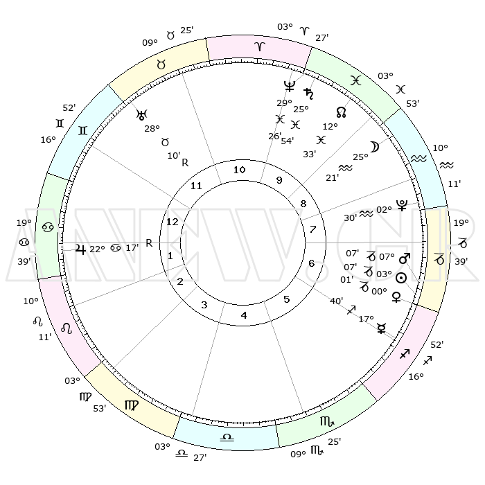 | | ΘΕΣΕΙΣ ΠΛΑΝΗΤΩΝ ΑΣΤΡΟΛΟΓΙΚΟΥ ΧΑΡΤΗ ΤΗΣ ΣΤΙΓΜΗΣ ΑΥΤΗΣ | | | | Πλανήτης | Ζώδιο | Μοίρες | Δεκαήμ. | Σε οίκο | Απόκλιση | | Ακμές των οίκων | | Ηλιος | Αιγόκερως | 03°02' | Πρώτο | 7 | 23 S 24 | | 1ος | 24°13' | Δίδυμοι | | Σελήνη | Υδροχόος | 24°20' | Τρίτο | 9 | 14 S 48 | | 2ος | 15°26' | Καρκίνος | | Ερμής | Τοξότης | 17°33' | Δεύτερο | 6 | 22 S 33 | | 3ος | 06°55' | Λέων | | Αφροδίτη | Τοξότης | 29°55' | Τρίτο | 7 | 23 S 39 | | 4ος | 02°21' | Παρθένος | | Αρης | Αιγόκερως | 07°03' | Πρώτο | 7 | 24 S 05 | | 5ος | 05°18' | Ζυγός | | Δίας | Καρκίνος | 22°17'R | Τρίτο | 2 | 21 N 48 | | 6ος | 15°35' | Σκορπιός | | Κρόνος | Ιχθείς | 25°54' | Τρίτο | 10 | 03 S 44 | | 7ος | 24°13' | Τοξότης | | Ουρανός | Ταύρος | 28°10'R | Τρίτο | 12 | 19 N 33 | | 8ος | 15°26' | Αιγόκερως | | Ποσειδώνας | Ιχθείς | 29°26' | Τρίτο | 10 | 01 S 27 | | 9ος | 06°55' | Υδροχόος | | Πλούτωνας | Υδροχόος | 02°30' | Πρώτο | 8 | 23 S 16 | | 10ος | 02°21' | Ιχθείς | | Β. Δεσμός | Ιχθείς | 12°34' | Δεύτερο | 10 | 06 S 51 | | 11ος | 05°18' | Κριός | | Ωροσκόπος | Δίδυμοι | 24°13' | Τρίτο | | | 12ος | 15°35' | Ταύρος | | Μεσουράνημα | Ιχθείς | 02°21' | Πρώτο | | | |