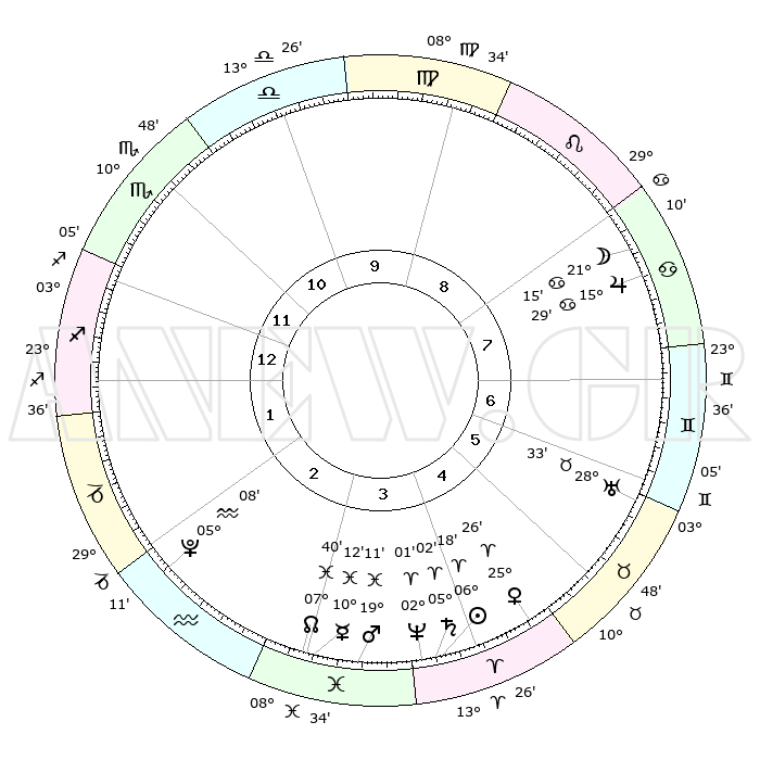 | | ΘΕΣΕΙΣ ΠΛΑΝΗΤΩΝ ΑΣΤΡΟΛΟΓΙΚΟΥ ΧΑΡΤΗ ΤΗΣ ΣΤΙΓΜΗΣ ΑΥΤΗΣ | | | | Πλανήτης | Ζώδιο | Μοίρες | Δεκαήμ. | Σε οίκο | Απόκλιση | | Ακμές των οίκων | | Ηλιος | Κριός | 06°14' | Πρώτο | 4 | 02 N 28 | | 1ος | 03°43' | Τοξότης | | Σελήνη | Καρκίνος | 20°21' | Τρίτο | 8 | 25 N 46 | | 2ος | 05°24' | Αιγόκερως | | Ερμής | Ιχθείς | 10°10' | Δεύτερο | 3 | 08 S 07 | | 3ος | 11°43' | Υδροχόος | | Αφροδίτη | Κριός | 25°21' | Τρίτο | 5 | 09 N 12 | | 4ος | 17°49' | Ιχθείς | | Αρης | Ιχθείς | 19°08' | Δεύτερο | 4 | 05 S 17 | | 5ος | 18°22' | Κριός | | Δίας | Καρκίνος | 15°29' | Δεύτερο | 8 | 22 N 54 | | 6ος | 12°55' | Ταύρος | | Κρόνος | Κριός | 05°02' | Πρώτο | 4 | 00 N 03 | | 7ος | 03°43' | Δίδυμοι | | Ουρανός | Ταύρος | 28°33' | Τρίτο | 6 | 19 N 40 | | 8ος | 05°24' | Καρκίνος | | Ποσειδώνας | Κριός | 02°01' | Πρώτο | 4 | 00 S 24 | | 9ος | 11°43' | Λέων | | Πλούτωνας | Υδροχόος | 05°08' | Πρώτο | 2 | 22 S 48 | | 10ος | 17°49' | Παρθένος | | Β. Δεσμός | Ιχθείς | 07°40' | Πρώτο | 3 | 08 S 41 | | 11ος | 18°22' | Ζυγός | | Ωροσκόπος | Τοξότης | 03°43' | Πρώτο | | | 12ος | 12°55' | Σκορπιός | | Μεσουράνημα | Παρθένος | 17°49' | Δεύτερο | | | |