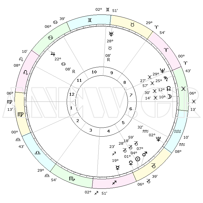 | | ΘΕΣΕΙΣ ΠΛΑΝΗΤΩΝ ΑΣΤΡΟΛΟΓΙΚΟΥ ΧΑΡΤΗ ΤΗΣ ΣΤΙΓΜΗΣ ΑΥΤΗΣ | | | | Πλανήτης | Ζώδιο | Μοίρες | Δεκαήμ. | Σε οίκο | Απόκλιση | | Ακμές των οίκων | | Ηλιος | Αιγόκερως | 04°13' | Πρώτο | 5 | 23 S 22 | | 1ος | 13°14' | Λέων | | Σελήνη | Ιχθείς | 09°12' | Πρώτο | 8 | 08 S 17 | | 2ος | 05°22' | Παρθένος | | Ερμής | Τοξότης | 19°16' | Δεύτερο | 5 | 22 S 50 | | 3ος | 02°11' | Ζυγός | | Αφροδίτη | Αιγόκερως | 01°22' | Πρώτο | 5 | 23 S 41 | | 4ος | 04°29' | Σκορπιός | | Αρης | Αιγόκερως | 07°56' | Πρώτο | 5 | 24 S 03 | | 5ος | 09°53' | Τοξότης | | Δίας | Καρκίνος | 22°09'R | Τρίτο | 12 | 21 N 50 | | 6ος | 13°36' | Αιγόκερως | | Κρόνος | Ιχθείς | 25°57' | Τρίτο | 8 | 03 S 42 | | 7ος | 13°14' | Υδροχόος | | Ουρανός | Ταύρος | 28°08'R | Τρίτο | 10 | 19 N 33 | | 8ος | 05°22' | Ιχθείς | | Ποσειδώνας | Ιχθείς | 29°26' | Τρίτο | 8 | 01 S 27 | | 9ος | 02°11' | Κριός | | Πλούτωνας | Υδροχόος | 02°32' | Πρώτο | 6 | 23 S 15 | | 10ος | 04°29' | Ταύρος | | Β. Δεσμός | Ιχθείς | 12°30' | Δεύτερο | 8 | 06 S 52 | | 11ος | 09°53' | Δίδυμοι | | Ωροσκόπος | Λέων | 13°14' | Δεύτερο | | | 12ος | 13°36' | Καρκίνος | | Μεσουράνημα | Ταύρος | 04°29' | Πρώτο | | | |