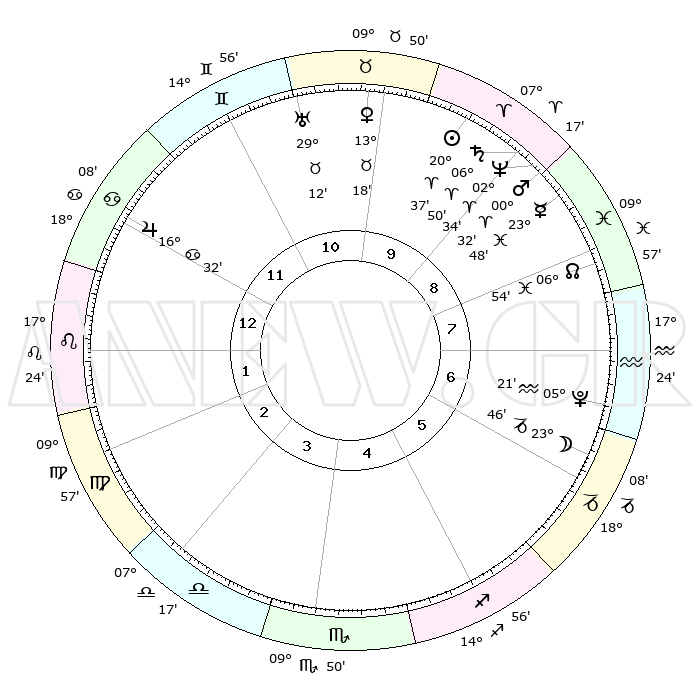 | | ΘΕΣΕΙΣ ΠΛΑΝΗΤΩΝ ΑΣΤΡΟΛΟΓΙΚΟΥ ΧΑΡΤΗ ΤΗΣ ΣΤΙΓΜΗΣ ΑΥΤΗΣ | | | | Πλανήτης | Ζώδιο | Μοίρες | Δεκαήμ. | Σε οίκο | Απόκλιση | | Ακμές των οίκων | | Ηλιος | Κριός | 20°34' | Τρίτο | 10 | 08 N 02 | | 1ος | 29°03' | Καρκίνος | | Σελήνη | Αιγόκερως | 23°00' | Τρίτο | 6 | 25 S 05 | | 2ος | 20°02' | Λέων | | Ερμής | Ιχθείς | 23°44' | Τρίτο | 9 | 04 S 40 | | 3ος | 14°57' | Παρθένος | | Αφροδίτη | Ταύρος | 13°14' | Δεύτερο | 10 | 15 N 46 | | 4ος | 15°52' | Ζυγός | | Αρης | Κριός | 00°29' | Πρώτο | 9 | 00 S 44 | | 5ος | 21°56' | Σκορπιός | | Δίας | Καρκίνος | 16°31' | Δεύτερο | 12 | 22 N 47 | | 6ος | 27°48' | Τοξότης | | Κρόνος | Κριός | 06°50' | Πρώτο | 9 | 00 N 45 | | 7ος | 29°03' | Αιγόκερως | | Ουρανός | Ταύρος | 29°12' | Τρίτο | 11 | 19 N 48 | | 8ος | 20°02' | Υδροχόος | | Ποσειδώνας | Κριός | 02°34' | Πρώτο | 9 | 00 S 11 | | 9ος | 14°57' | Ιχθείς | | Πλούτωνας | Υδροχόος | 05°21' | Πρώτο | 7 | 22 S 47 | | 10ος | 15°52' | Κριός | | Β. Δεσμός | Ιχθείς | 06°54' | Πρώτο | 8 | 08 S 58 | | 11ος | 21°56' | Ταύρος | | Ωροσκόπος | Καρκίνος | 29°03' | Τρίτο | | | 12ος | 27°48' | Δίδυμοι | | Μεσουράνημα | Κριός | 15°52' | Δεύτερο | | | |