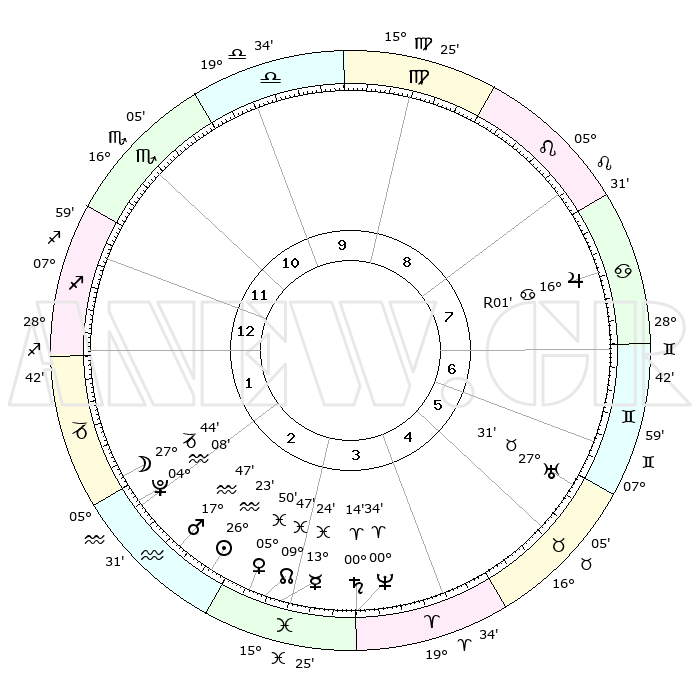 | | ΘΕΣΕΙΣ ΠΛΑΝΗΤΩΝ ΑΣΤΡΟΛΟΓΙΚΟΥ ΧΑΡΤΗ ΤΗΣ ΣΤΙΓΜΗΣ ΑΥΤΗΣ | | | | Πλανήτης | Ζώδιο | Μοίρες | Δεκαήμ. | Σε οίκο | Απόκλιση | | Ακμές των οίκων | | Ηλιος | Υδροχόος | 26°20' | Τρίτο | 3 | 12 S 44 | | 1ος | 08°49' | Τοξότης | | Σελήνη | Αιγόκερως | 26°56' | Τρίτο | 2 | 24 S 14 | | 2ος | 11°19' | Αιγόκερως | | Ερμής | Ιχθείς | 13°18' | Δεύτερο | 3 | 06 S 31 | | 3ος | 18°31' | Υδροχόος | | Αφροδίτη | Ιχθείς | 05°45' | Πρώτο | 3 | 10 S 46 | | 4ος | 24°33' | Ιχθείς | | Αρης | Υδροχόος | 17°44' | Δεύτερο | 2 | 16 S 32 | | 5ος | 24°21' | Κριός | | Δίας | Καρκίνος | 16°01'R | Δεύτερο | 8 | 22 N 48 | | 6ος | 18°14' | Ταύρος | | Κρόνος | Κριός | 00°14' | Πρώτο | 4 | 01 S 53 | | 7ος | 08°49' | Δίδυμοι | | Ουρανός | Ταύρος | 27°31' | Τρίτο | 6 | 19 N 25 | | 8ος | 11°19' | Καρκίνος | | Ποσειδώνας | Κριός | 00°34' | Πρώτο | 4 | 00 S 59 | | 9ος | 18°31' | Λέων | | Πλούτωνας | Υδροχόος | 04°08' | Πρώτο | 2 | 22 S 57 | | 10ος | 24°33' | Παρθένος | | Β. Δεσμός | Ιχθείς | 09°47' | Πρώτο | 3 | 07 S 54 | | 11ος | 24°21' | Ζυγός | | Ωροσκόπος | Τοξότης | 08°49' | Πρώτο | | | 12ος | 18°14' | Σκορπιός | | Μεσουράνημα | Παρθένος | 24°33' | Τρίτο | | | |