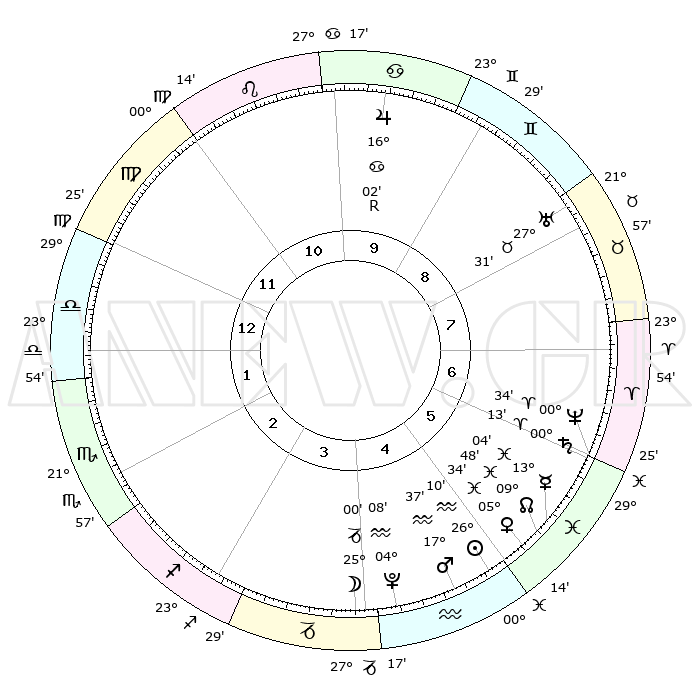 | | ΘΕΣΕΙΣ ΠΛΑΝΗΤΩΝ ΑΣΤΡΟΛΟΓΙΚΟΥ ΧΑΡΤΗ ΤΗΣ ΣΤΙΓΜΗΣ ΑΥΤΗΣ | | | | Πλανήτης | Ζώδιο | Μοίρες | Δεκαήμ. | Σε οίκο | Απόκλιση | | Ακμές των οίκων | | Ηλιος | Υδροχόος | 26°06' | Τρίτο | 5 | 12 S 49 | | 1ος | 03°30' | Ζυγός | | Σελήνη | Αιγόκερως | 24°08' | Τρίτο | 4 | 24 S 56 | | 2ος | 00°19' | Σκορπιός | | Ερμής | Ιχθείς | 12°58' | Δεύτερο | 6 | 06 S 41 | | 3ος | 00°54' | Τοξότης | | Αφροδίτη | Ιχθείς | 05°29' | Πρώτο | 5 | 10 S 52 | | 4ος | 03°55' | Αιγόκερως | | Αρης | Υδροχόος | 17°34' | Δεύτερο | 5 | 16 S 36 | | 5ος | 06°52' | Υδροχόος | | Δίας | Καρκίνος | 16°02'R | Δεύτερο | 10 | 22 N 48 | | 6ος | 07°10' | Ιχθείς | | Κρόνος | Κριός | 00°12' | Πρώτο | 6 | 01 S 53 | | 7ος | 03°30' | Κριός | | Ουρανός | Ταύρος | 27°31' | Τρίτο | 8 | 19 N 25 | | 8ος | 00°20' | Ταύρος | | Ποσειδώνας | Κριός | 00°34' | Πρώτο | 6 | 00 S 59 | | 9ος | 00°54' | Δίδυμοι | | Πλούτωνας | Υδροχόος | 04°08' | Πρώτο | 4 | 22 S 57 | | 10ος | 03°55' | Καρκίνος | | Β. Δεσμός | Ιχθείς | 09°48' | Πρώτο | 6 | 07 S 54 | | 11ος | 06°52' | Λέων | | Ωροσκόπος | Ζυγός | 03°30' | Πρώτο | | | 12ος | 07°10' | Παρθένος | | Μεσουράνημα | Καρκίνος | 03°55' | Πρώτο | | | |