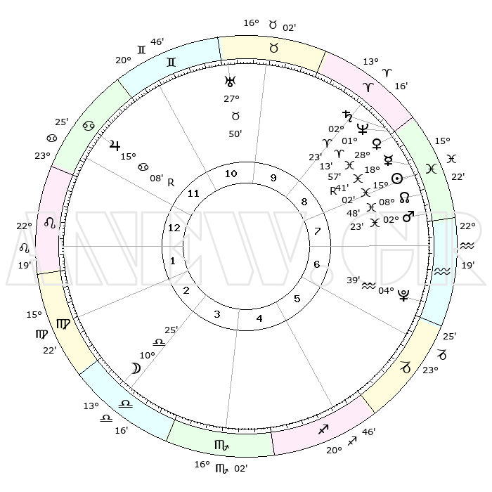 | | ΘΕΣΕΙΣ ΠΛΑΝΗΤΩΝ ΑΣΤΡΟΛΟΓΙΚΟΥ ΧΑΡΤΗ ΤΗΣ ΣΤΙΓΜΗΣ ΑΥΤΗΣ | | | | Πλανήτης | Ζώδιο | Μοίρες | Δεκαήμ. | Σε οίκο | Απόκλιση | | Ακμές των οίκων | | Ηλιος | Ιχθείς | 14°57' | Δεύτερο | 8 | 05 S 56 | | 1ος | 01°23' | Λέων | | Σελήνη | Ζυγός | 09°30' | Πρώτο | 3 | 06 S 14 | | 2ος | 22°31' | Λέων | | Ερμής | Ιχθείς | 18°45'R | Δεύτερο | 9 | 01 S 03 | | 3ος | 17°45' | Παρθένος | | Αφροδίτη | Ιχθείς | 28°52' | Τρίτο | 9 | 01 S 38 | | 4ος | 18°57' | Ζυγός | | Αρης | Ιχθείς | 02°19' | Πρώτο | 8 | 11 S 40 | | 5ος | 24°58' | Σκορπιός | | Δίας | Καρκίνος | 15°08'R | Δεύτερο | 12 | 22 N 55 | | 6ος | 00°26' | Αιγόκερως | | Κρόνος | Κριός | 02°23' | Πρώτο | 9 | 01 S 00 | | 7ος | 01°23' | Υδροχόος | | Ουρανός | Ταύρος | 27°50' | Τρίτο | 11 | 19 N 30 | | 8ος | 22°31' | Υδροχόος | | Ποσειδώνας | Κριός | 01°13' | Πρώτο | 9 | 00 S 43 | | 9ος | 17°45' | Ιχθείς | | Πλούτωνας | Υδροχόος | 04°39' | Πρώτο | 7 | 22 S 51 | | 10ος | 18°57' | Κριός | | Β. Δεσμός | Ιχθείς | 08°48' | Πρώτο | 8 | 08 S 16 | | 11ος | 24°58' | Ταύρος | | Ωροσκόπος | Λέων | 01°23' | Πρώτο | | | 12ος | 00°26' | Καρκίνος | | Μεσουράνημα | Κριός | 18°57' | Δεύτερο | | | |
