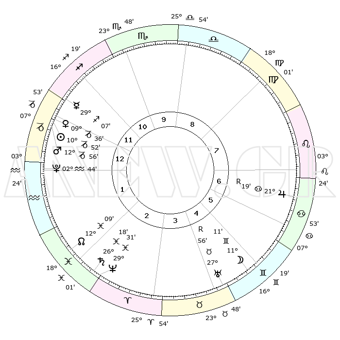 | | ΘΕΣΕΙΣ ΠΛΑΝΗΤΩΝ ΑΣΤΡΟΛΟΓΙΚΟΥ ΧΑΡΤΗ ΤΗΣ ΣΤΙΓΜΗΣ ΑΥΤΗΣ | | | | Πλανήτης | Ζώδιο | Μοίρες | Δεκαήμ. | Σε οίκο | Απόκλιση | | Ακμές των οίκων | | Ηλιος | Αιγόκερως | 10°48' | Δεύτερο | 1 | 23 S 00 | | 1ος | 08°08' | Αιγόκερως | | Σελήνη | Δίδυμοι | 10°13' | Δεύτερο | 5 | 26 N 59 | | 2ος | 17°22' | Υδροχόος | | Ερμής | Τοξότης | 29°01' | Τρίτο | 12 | 24 S 01 | | 3ος | 27°40' | Ιχθείς | | Αφροδίτη | Αιγόκερως | 09°31' | Πρώτο | 1 | 23 S 36 | | 4ος | 00°12' | Ταύρος | | Αρης | Αιγόκερως | 12°53' | Δεύτερο | 1 | 23 S 42 | | 5ος | 25°18' | Ταύρος | | Δίας | Καρκίνος | 21°19'R | Τρίτο | 7 | 21 N 59 | | 6ος | 16°41' | Δίδυμοι | | Κρόνος | Ιχθείς | 26°18' | Τρίτο | 2 | 03 S 33 | | 7ος | 08°08' | Καρκίνος | | Ουρανός | Ταύρος | 27°56'R | Τρίτο | 5 | 19 N 30 | | 8ος | 17°22' | Λέων | | Ποσειδώνας | Ιχθείς | 29°31' | Τρίτο | 3 | 01 S 25 | | 9ος | 27°40' | Παρθένος | | Πλούτωνας | Υδροχόος | 02°44' | Πρώτο | 1 | 23 S 13 | | 10ος | 00°12' | Σκορπιός | | Β. Δεσμός | Ιχθείς | 12°09' | Δεύτερο | 2 | 07 S 00 | | 11ος | 25°18' | Σκορπιός | | Ωροσκόπος | Αιγόκερως | 08°08' | Πρώτο | | | 12ος | 16°41' | Τοξότης | | Μεσουράνημα | Σκορπιός | 00°12' | Πρώτο | | | |