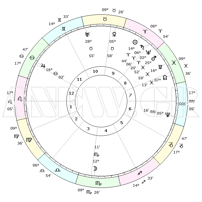 | | ΘΕΣΕΙΣ ΠΛΑΝΗΤΩΝ ΑΣΤΡΟΛΟΓΙΚΟΥ ΧΑΡΤΗ ΤΗΣ ΣΤΙΓΜΗΣ ΑΥΤΗΣ | | | | Πλανήτης | Ζώδιο | Μοίρες | Δεκαήμ. | Σε οίκο | Απόκλιση | | Ακμές των οίκων | | Ηλιος | Κριός | 14°41' | Δεύτερο | 9 | 05 N 47 | | 1ος | 29°08' | Καρκίνος | | Σελήνη | Σκορπιός | 11°26' | Δεύτερο | 4 | 19 S 38 | | 2ος | 20°07' | Λέων | | Ερμής | Ιχθείς | 16°55' | Δεύτερο | 9 | 06 S 49 | | 3ος | 15°03' | Παρθένος | | Αφροδίτη | Ταύρος | 05°53' | Πρώτο | 10 | 13 N 12 | | 4ος | 15°59' | Ζυγός | | Αρης | Ιχθείς | 25°49' | Τρίτο | 9 | 02 S 37 | | 5ος | 22°03' | Σκορπιός | | Δίας | Καρκίνος | 16°01' | Δεύτερο | 12 | 22 N 51 | | 6ος | 27°53' | Τοξότης | | Κρόνος | Κριός | 06°05' | Πρώτο | 9 | 00 N 28 | | 7ος | 29°08' | Αιγόκερως | | Ουρανός | Ταύρος | 28°55' | Τρίτο | 11 | 19 N 45 | | 8ος | 20°07' | Υδροχόος | | Ποσειδώνας | Κριός | 02°20' | Πρώτο | 9 | 00 S 16 | | 9ος | 15°03' | Ιχθείς | | Πλούτωνας | Υδροχόος | 05°16' | Πρώτο | 7 | 22 S 47 | | 10ος | 15°59' | Κριός | | Β. Δεσμός | Ιχθείς | 07°13' | Πρώτο | 8 | 08 S 51 | | 11ος | 22°03' | Ταύρος | | Ωροσκόπος | Καρκίνος | 29°08' | Τρίτο | | | 12ος | 27°53' | Δίδυμοι | | Μεσουράνημα | Κριός | 15°59' | Δεύτερο | | | |