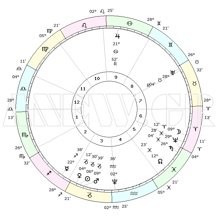 | | ΘΕΣΕΙΣ ΠΛΑΝΗΤΩΝ ΑΣΤΡΟΛΟΓΙΚΟΥ ΧΑΡΤΗ ΤΗΣ ΣΤΙΓΜΗΣ ΑΥΤΗΣ | | | | Πλανήτης | Ζώδιο | Μοίρες | Δεκαήμ. | Σε οίκο | Απόκλιση | | Ακμές των οίκων | | Ηλιος | Αιγόκερως | 06°26' | Πρώτο | 3 | 23 S 17 | | 1ος | 08°28' | Ζυγός | | Σελήνη | Κριός | 08°16' | Πρώτο | 6 | 05 N 24 | | 2ος | 05°38' | Σκορπιός | | Ερμής | Τοξότης | 22°32' | Τρίτο | 3 | 23 S 20 | | 3ος | 06°24' | Τοξότης | | Αφροδίτη | Αιγόκερως | 04°07' | Πρώτο | 3 | 23 S 43 | | 4ος | 09°32' | Αιγόκερως | | Αρης | Αιγόκερως | 09°36' | Πρώτο | 4 | 23 S 57 | | 5ος | 12°28' | Υδροχόος | | Δίας | Καρκίνος | 21°52'R | Τρίτο | 10 | 21 N 53 | | 6ος | 12°33' | Ιχθείς | | Κρόνος | Ιχθείς | 26°04' | Τρίτο | 6 | 03 S 39 | | 7ος | 08°29' | Κριός | | Ουρανός | Ταύρος | 28°04'R | Τρίτο | 8 | 19 N 32 | | 8ος | 05°38' | Ταύρος | | Ποσειδώνας | Ιχθείς | 29°28' | Τρίτο | 6 | 01 S 26 | | 9ος | 06°24' | Δίδυμοι | | Πλούτωνας | Υδροχόος | 02°36' | Πρώτο | 4 | 23 S 15 | | 10ος | 09°32' | Καρκίνος | | Β. Δεσμός | Ιχθείς | 12°23' | Δεύτερο | 5 | 06 S 55 | | 11ος | 12°28' | Λέων | | Ωροσκόπος | Ζυγός | 08°28' | Πρώτο | | | 12ος | 12°33' | Παρθένος | | Μεσουράνημα | Καρκίνος | 09°32' | Πρώτο | | | |