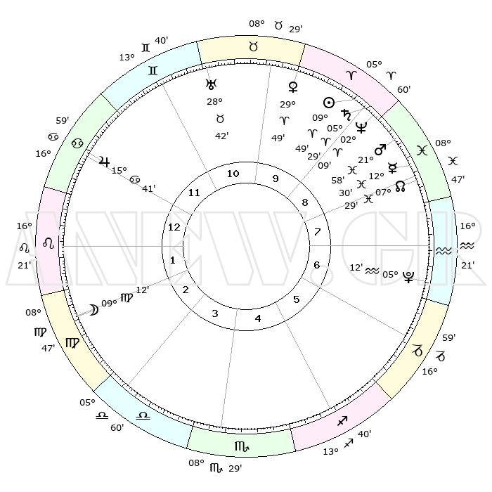 | | ΘΕΣΕΙΣ ΠΛΑΝΗΤΩΝ ΑΣΤΡΟΛΟΓΙΚΟΥ ΧΑΡΤΗ ΤΗΣ ΣΤΙΓΜΗΣ ΑΥΤΗΣ | | | | Πλανήτης | Ζώδιο | Μοίρες | Δεκαήμ. | Σε οίκο | Απόκλιση | | Ακμές των οίκων | | Ηλιος | Κριός | 10°13' | Δεύτερο | 4 | 04 N 03 | | 1ος | 15°06' | Τοξότης | | Σελήνη | Παρθένος | 14°30' | Δεύτερο | 9 | 05 N 37 | | 2ος | 18°48' | Αιγόκερως | | Ερμής | Ιχθείς | 12°49' | Δεύτερο | 3 | 07 S 47 | | 3ος | 27°02' | Υδροχόος | | Αφροδίτη | Ταύρος | 00°19' | Πρώτο | 4 | 11 N 08 | | 4ος | 02°44' | Κριός | | Αρης | Ιχθείς | 22°17' | Τρίτο | 3 | 04 S 01 | | 5ος | 01°32' | Ταύρος | | Δίας | Καρκίνος | 15°43' | Δεύτερο | 7 | 22 N 53 | | 6ος | 24°40' | Ταύρος | | Κρόνος | Κριός | 05°32' | Πρώτο | 4 | 00 N 14 | | 7ος | 15°06' | Δίδυμοι | | Ουρανός | Ταύρος | 28°43' | Τρίτο | 6 | 19 N 42 | | 8ος | 18°48' | Καρκίνος | | Ποσειδώνας | Κριός | 02°10' | Πρώτο | 3 | 00 S 20 | | 9ος | 27°02' | Λέων | | Πλούτωνας | Υδροχόος | 05°12' | Πρώτο | 2 | 22 S 47 | | 10ος | 02°44' | Ζυγός | | Β. Δεσμός | Ιχθείς | 07°28' | Πρώτο | 3 | 08 S 46 | | 11ος | 01°32' | Σκορπιός | | Ωροσκόπος | Τοξότης | 15°06' | Δεύτερο | | | 12ος | 24°40' | Σκορπιός | | Μεσουράνημα | Ζυγός | 02°44' | Πρώτο | | | |