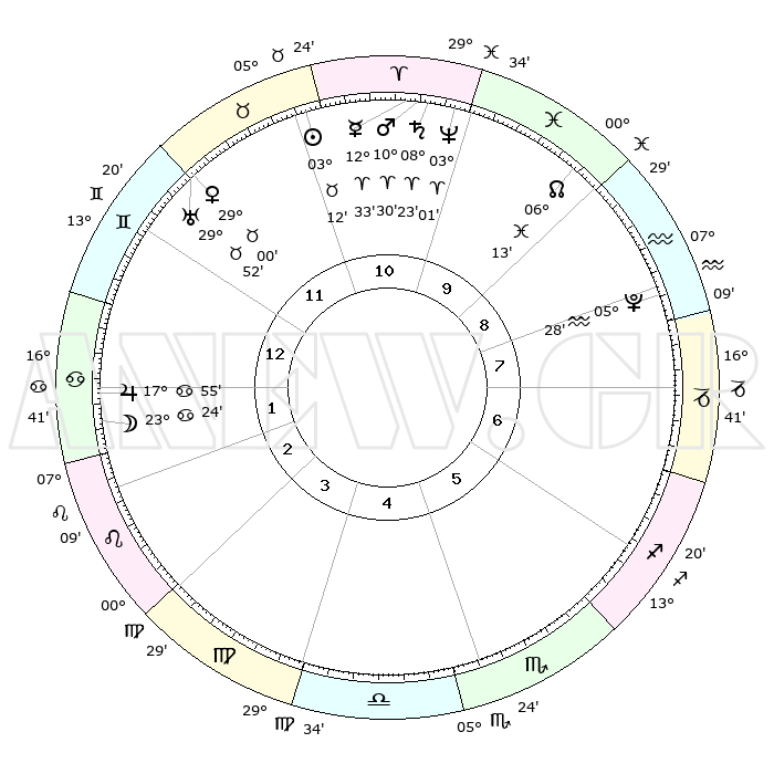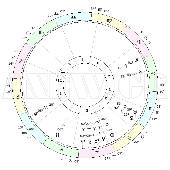 | | ΘΕΣΕΙΣ ΠΛΑΝΗΤΩΝ ΑΣΤΡΟΛΟΓΙΚΟΥ ΧΑΡΤΗ ΤΗΣ ΣΤΙΓΜΗΣ ΑΥΤΗΣ | | | | Πλανήτης | Ζώδιο | Μοίρες | Δεκαήμ. | Σε οίκο | Απόκλιση | | Ακμές των οίκων | | Ηλιος | Ταύρος | 02°21' | Πρώτο | 9 | 12 N 17 | | 1ος | 21°40' | Λέων | | Σελήνη | Καρκίνος | 10°57' | Δεύτερο | 11 | 27 N 13 | | 2ος | 14°39' | Παρθένος | | Ερμής | Κριός | 11°07' | Δεύτερο | 8 | 02 N 03 | | 3ος | 12°28' | Ζυγός | | Αφροδίτη | Ταύρος | 27°56' | Τρίτο | 10 | 20 N 12 | | 4ος | 15°12' | Σκορπιός | | Αρης | Κριός | 09°49' | Πρώτο | 8 | 03 N 01 | | 5ος | 19°60' | Τοξότης | | Δίας | Καρκίνος | 17°48' | Δεύτερο | 11 | 22 N 38 | | 6ος | 22°43' | Αιγόκερως | | Κρόνος | Κριός | 08°17' | Πρώτο | 8 | 01 N 18 | | 7ος | 21°40' | Υδροχόος | | Ουρανός | Ταύρος | 29°49' | Τρίτο | 10 | 19 N 57 | | 8ος | 14°39' | Ιχθείς | | Ποσειδώνας | Κριός | 02°59' | Πρώτο | 8 | 00 S 01 | | 9ος | 12°28' | Κριός | | Πλούτωνας | Υδροχόος | 05°28' | Πρώτο | 6 | 22 S 48 | | 10ος | 15°12' | Ταύρος | | Β. Δεσμός | Ιχθείς | 06°16' | Πρώτο | 7 | 09 S 13 | | 11ος | 19°60' | Δίδυμοι | | Ωροσκόπος | Λέων | 21°40' | Τρίτο | | | 12ος | 22°43' | Καρκίνος | | Μεσουράνημα | Ταύρος | 15°12' | Δεύτερο | | | |
