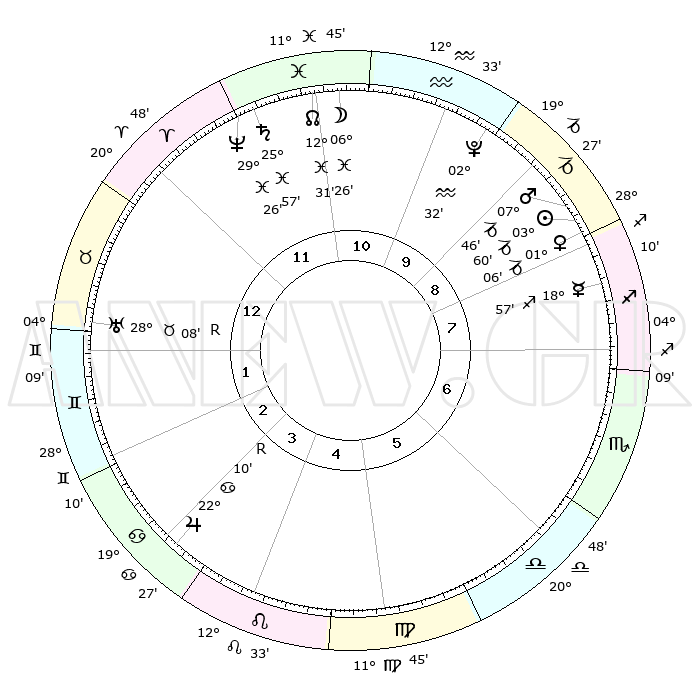 | | ΘΕΣΕΙΣ ΠΛΑΝΗΤΩΝ ΑΣΤΡΟΛΟΓΙΚΟΥ ΧΑΡΤΗ ΤΗΣ ΣΤΙΓΜΗΣ ΑΥΤΗΣ | | | | Πλανήτης | Ζώδιο | Μοίρες | Δεκαήμ. | Σε οίκο | Απόκλιση | | Ακμές των οίκων | | Ηλιος | Αιγόκερως | 04°13' | Πρώτο | 5 | 23 S 22 | | 1ος | 13°38' | Λέων | | Σελήνη | Ιχθείς | 09°13' | Πρώτο | 8 | 08 S 17 | | 2ος | 05°48' | Παρθένος | | Ερμής | Τοξότης | 19°16' | Δεύτερο | 5 | 22 S 50 | | 3ος | 02°40' | Ζυγός | | Αφροδίτη | Αιγόκερως | 01°22' | Πρώτο | 5 | 23 S 41 | | 4ος | 05°00' | Σκορπιός | | Αρης | Αιγόκερως | 07°56' | Πρώτο | 5 | 24 S 03 | | 5ος | 10°23' | Τοξότης | | Δίας | Καρκίνος | 22°09'R | Τρίτο | 12 | 21 N 50 | | 6ος | 14°02' | Αιγόκερως | | Κρόνος | Ιχθείς | 25°57' | Τρίτο | 8 | 03 S 42 | | 7ος | 13°38' | Υδροχόος | | Ουρανός | Ταύρος | 28°08'R | Τρίτο | 10 | 19 N 33 | | 8ος | 05°48' | Ιχθείς | | Ποσειδώνας | Ιχθείς | 29°26' | Τρίτο | 8 | 01 S 27 | | 9ος | 02°40' | Κριός | | Πλούτωνας | Υδροχόος | 02°32' | Πρώτο | 6 | 23 S 15 | | 10ος | 05°00' | Ταύρος | | Β. Δεσμός | Ιχθείς | 12°30' | Δεύτερο | 8 | 06 S 52 | | 11ος | 10°23' | Δίδυμοι | | Ωροσκόπος | Λέων | 13°38' | Δεύτερο | | | 12ος | 14°02' | Καρκίνος | | Μεσουράνημα | Ταύρος | 05°00' | Πρώτο | | | |
