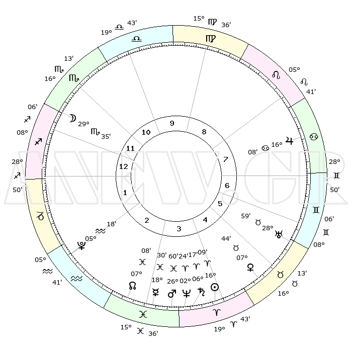| | ΘΕΣΕΙΣ ΠΛΑΝΗΤΩΝ ΑΣΤΡΟΛΟΓΙΚΟΥ ΧΑΡΤΗ ΤΗΣ ΣΤΙΓΜΗΣ ΑΥΤΗΣ | | | | Πλανήτης | Ζώδιο | Μοίρες | Δεκαήμ. | Σε οίκο | Απόκλιση | | Ακμές των οίκων | | Ηλιος | Κριός | 16°06' | Δεύτερο | 4 | 06 N 20 | | 1ος | 09°09' | Τοξότης | | Σελήνη | Σκορπιός | 28°50' | Τρίτο | 12 | 24 S 52 | | 2ος | 11°43' | Αιγόκερως | | Ερμής | Ιχθείς | 18°26' | Δεύτερο | 3 | 06 S 23 | | 3ος | 18°58' | Υδροχόος | | Αφροδίτη | Ταύρος | 07°39' | Πρώτο | 5 | 13 N 50 | | 4ος | 24°59' | Ιχθείς | | Αρης | Ιχθείς | 26°57' | Τρίτο | 4 | 02 S 09 | | 5ος | 24°44' | Κριός | | Δίας | Καρκίνος | 16°08' | Δεύτερο | 8 | 22 N 50 | | 6ος | 18°35' | Ταύρος | | Κρόνος | Κριός | 06°16' | Πρώτο | 4 | 00 N 32 | | 7ος | 09°09' | Δίδυμοι | | Ουρανός | Ταύρος | 28°59' | Τρίτο | 6 | 19 N 46 | | 8ος | 11°43' | Καρκίνος | | Ποσειδώνας | Κριός | 02°24' | Πρώτο | 4 | 00 S 15 | | 9ος | 18°58' | Λέων | | Πλούτωνας | Υδροχόος | 05°17' | Πρώτο | 2 | 22 S 47 | | 10ος | 24°59' | Παρθένος | | Β. Δεσμός | Ιχθείς | 07°09' | Πρώτο | 3 | 08 S 53 | | 11ος | 24°44' | Ζυγός | | Ωροσκόπος | Τοξότης | 09°09' | Πρώτο | | | 12ος | 18°34' | Σκορπιός | | Μεσουράνημα | Παρθένος | 24°59' | Τρίτο | | | |