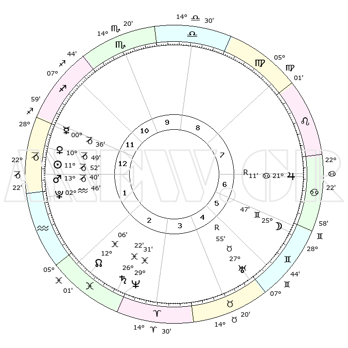 | | ΘΕΣΕΙΣ ΠΛΑΝΗΤΩΝ ΑΣΤΡΟΛΟΓΙΚΟΥ ΧΑΡΤΗ ΤΗΣ ΣΤΙΓΜΗΣ ΑΥΤΗΣ | | | | Πλανήτης | Ζώδιο | Μοίρες | Δεκαήμ. | Σε οίκο | Απόκλιση | | Ακμές των οίκων | | Ηλιος | Αιγόκερως | 11°47' | Δεύτερο | 1 | 22 S 55 | | 1ος | 23°59' | Τοξότης | | Σελήνη | Δίδυμοι | 24°35' | Τρίτο | 7 | 28 N 14 | | 2ος | 29°39' | Αιγόκερως | | Ερμής | Αιγόκερως | 00°29' | Πρώτο | 1 | 24 S 08 | | 3ος | 09°05' | Ιχθείς | | Αφροδίτη | Αιγόκερως | 10°43' | Δεύτερο | 1 | 23 S 33 | | 4ος | 13°54' | Κριός | | Αρης | Αιγόκερως | 13°37' | Δεύτερο | 1 | 23 S 38 | | 5ος | 11°12' | Ταύρος | | Δίας | Καρκίνος | 21°12'R | Τρίτο | 7 | 22 N 00 | | 6ος | 03°27' | Δίδυμοι | | Κρόνος | Ιχθείς | 26°21' | Τρίτο | 3 | 03 S 31 | | 7ος | 23°58' | Δίδυμοι | | Ουρανός | Ταύρος | 27°55'R | Τρίτο | 5 | 19 N 30 | | 8ος | 29°39' | Καρκίνος | | Ποσειδώνας | Ιχθείς | 29°31' | Τρίτο | 3 | 01 S 25 | | 9ος | 09°05' | Παρθένος | | Πλούτωνας | Υδροχόος | 02°46' | Πρώτο | 2 | 23 S 13 | | 10ος | 13°54' | Ζυγός | | Β. Δεσμός | Ιχθείς | 12°06' | Δεύτερο | 3 | 07 S 01 | | 11ος | 11°12' | Σκορπιός | | Ωροσκόπος | Τοξότης | 23°59' | Τρίτο | | | 12ος | 03°27' | Τοξότης | | Μεσουράνημα | Ζυγός | 13°54' | Δεύτερο | | | |