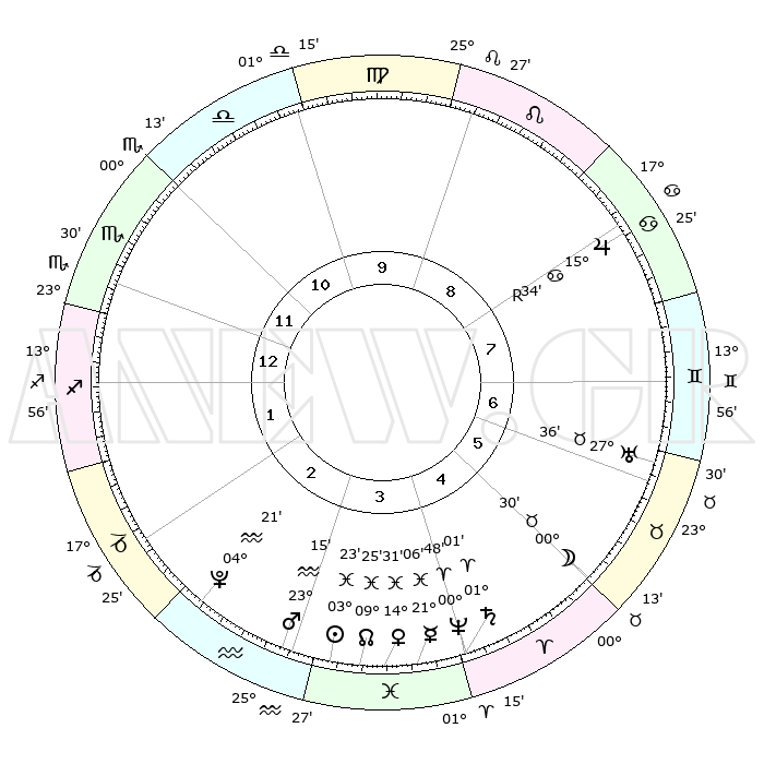 | | ΘΕΣΕΙΣ ΠΛΑΝΗΤΩΝ ΑΣΤΡΟΛΟΓΙΚΟΥ ΧΑΡΤΗ ΤΗΣ ΣΤΙΓΜΗΣ ΑΥΤΗΣ | | | | Πλανήτης | Ζώδιο | Μοίρες | Δεκαήμ. | Σε οίκο | Απόκλιση | | Ακμές των οίκων | | Ηλιος | Ιχθείς | 03°19' | Πρώτο | 3 | 10 S 17 | | 1ος | 23°13' | Σκορπιός | | Σελήνη | Κριός | 29°31' | Τρίτο | 5 | 15 N 07 | | 2ος | 23°31' | Τοξότης | | Ερμής | Ιχθείς | 21°03' | Τρίτο | 4 | 01 S 57 | | 3ος | 28°08' | Αιγόκερως | | Αφροδίτη | Ιχθείς | 14°25' | Δεύτερο | 4 | 07 S 28 | | 4ος | 03°56' | Ιχθείς | | Αρης | Υδροχόος | 23°12' | Τρίτο | 3 | 14 S 49 | | 5ος | 05°42' | Κριός | | Δίας | Καρκίνος | 15°34'R | Δεύτερο | 8 | 22 N 52 | | 6ος | 01°41' | Ταύρος | | Κρόνος | Κριός | 01°01' | Πρώτο | 4 | 01 S 34 | | 7ος | 23°13' | Ταύρος | | Ουρανός | Ταύρος | 27°36' | Τρίτο | 7 | 19 N 27 | | 8ος | 23°31' | Δίδυμοι | | Ποσειδώνας | Κριός | 00°48' | Πρώτο | 4 | 00 S 53 | | 9ος | 28°08' | Καρκίνος | | Πλούτωνας | Υδροχόος | 04°20' | Πρώτο | 3 | 22 S 54 | | 10ος | 03°56' | Παρθένος | | Β. Δεσμός | Ιχθείς | 09°25' | Πρώτο | 4 | 08 S 02 | | 11ος | 05°42' | Ζυγός | | Ωροσκόπος | Σκορπιός | 23°13' | Τρίτο | | | 12ος | 01°41' | Σκορπιός | | Μεσουράνημα | Παρθένος | 03°56' | Πρώτο | | | |
