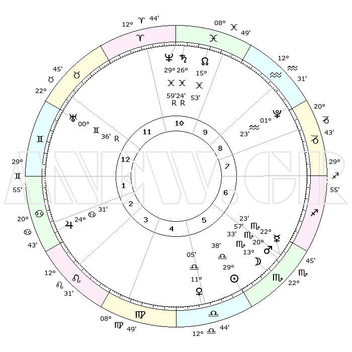 | ΘΕΣΕΙΣ ΠΛΑΝΗΤΩΝ ΑΣΤΡΟΛΟΓΙΚΟΥ ΧΑΡΤΗ ΤΗΣ ΣΤΙΓΜΗΣ ΑΥΤΗΣ | | Πλανήτης | Ζώδιο | Μοίρες | Δεκαήμ. | Σε οίκο | Απόκλιση | | Ακμές των οίκων | Ηλιος | Ζυγός | 29°32' | Τρίτο | 6 | 11 S 18 | | 1ος | 21°18' | Ταύρος | Σελήνη | Σκορπιός | 12°22' | Δεύτερο | 6 | 19 S 32 | | 2ος | 18°01' | Δίδυμοι | Ερμής | Σκορπιός | 22°16' | Τρίτο | 7 | 20 S 42 | | 3ος | 09°50' | Καρκίνος | Αφροδίτη | Ζυγός | 10°58' | Δεύτερο | 6 | 02 S 55 | | 4ος | 02°04' | Λέων | Αρης | Σκορπιός | 20°53' | Τρίτο | 6 | 18 S 16 | | 5ος | 29°07' | Λέων | Δίας | Καρκίνος | 24°30' | Τρίτο | 3 | 21 N 17 | | 6ος | 06°03' | Ζυγός | Κρόνος | Ιχθείς | 26°24'R | Τρίτο | 11 | 03 S 43 | | 7ος | 21°18' | Σκορπιός | Ουρανός | Δίδυμοι | 00°37'R | Πρώτο | 1 | 20 N 04 | | 8ος | 18°01' | Τοξότης | Ποσειδώνας | Ιχθείς | 29°59'R | Τρίτο | 11 | 01 S 16 | | 9ος | 09°50' | Αιγόκερως | Πλούτωνας | Υδροχόος | 01°23' | Πρώτο | 9 | 23 S 32 | | 10ος | 02°04' | Υδροχόος | Β. Δεσμός | Ιχθείς | 15°54' | Δεύτερο | 11 | 05 S 34 | | 11ος | 29°07' | Υδροχόος | Ωροσκόπος | Ταύρος | 21°18' | Τρίτο | | | 12ος | 06°03' | Κριός | Μεσουράνημα | Υδροχόος | 02°04' | Πρώτο | | | |