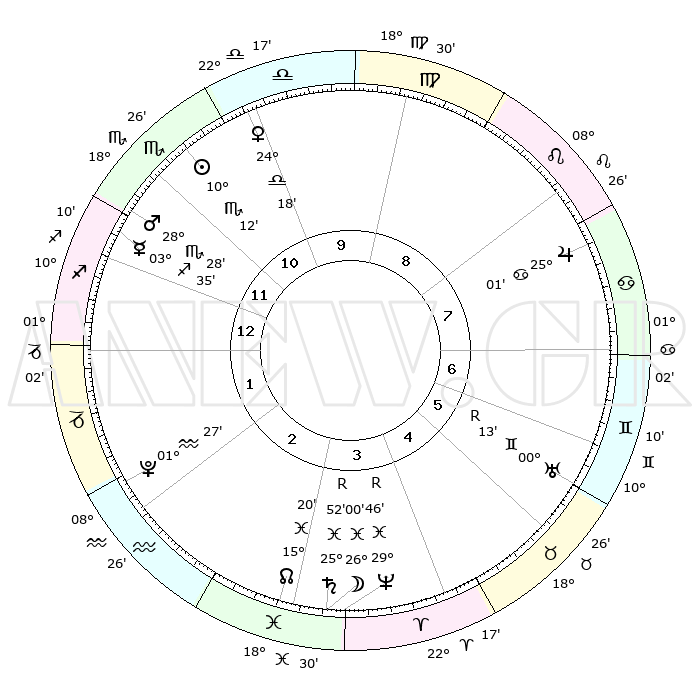| | ΘΕΣΕΙΣ ΠΛΑΝΗΤΩΝ ΑΣΤΡΟΛΟΓΙΚΟΥ ΧΑΡΤΗ ΤΗΣ ΣΤΙΓΜΗΣ ΑΥΤΗΣ | | | | Πλανήτης | Ζώδιο | Μοίρες | Δεκαήμ. | Σε οίκο | Απόκλιση | | Ακμές των οίκων | | Ηλιος | Σκορπιός | 09°35' | Πρώτο | 5 | 14 S 41 | | 1ος | 29°18' | Δίδυμοι | | Σελήνη | Ιχθείς | 17°22' | Δεύτερο | 10 | 04 S 58 | | 2ος | 20°08' | Καρκίνος | | Ερμής | Τοξότης | 03°05' | Πρώτο | 6 | 23 S 37 | | 3ος | 11°53' | Λέων | | Αφροδίτη | Ζυγός | 23°32' | Τρίτο | 5 | 07 S 46 | | 4ος | 08°06' | Παρθένος | | Αρης | Σκορπιός | 28°01' | Τρίτο | 6 | 20 S 06 | | 5ος | 11°55' | Ζυγός | | Δίας | Καρκίνος | 24°59' | Τρίτο | 2 | 21 N 13 | | 6ος | 21°58' | Σκορπιός | | Κρόνος | Ιχθείς | 25°53'R | Τρίτο | 10 | 03 S 54 | | 7ος | 29°18' | Τοξότης | | Ουρανός | Δίδυμοι | 00°15'R | Πρώτο | 12 | 19 N 59 | | 8ος | 20°08' | Αιγόκερως | | Ποσειδώνας | Ιχθείς | 29°46'R | Τρίτο | 10 | 01 S 21 | | 9ος | 11°53' | Υδροχόος | | Πλούτωνας | Υδροχόος | 01°27' | Πρώτο | 8 | 23 S 31 | | 10ος | 08°06' | Ιχθείς | | Β. Δεσμός | Ιχθείς | 15°22' | Δεύτερο | 10 | 05 S 46 | | 11ος | 11°55' | Κριός | | Ωροσκόπος | Δίδυμοι | 29°18' | Τρίτο | | | 12ος | 21°58' | Ταύρος | | Μεσουράνημα | Ιχθείς | 08°06' | Πρώτο | | | |