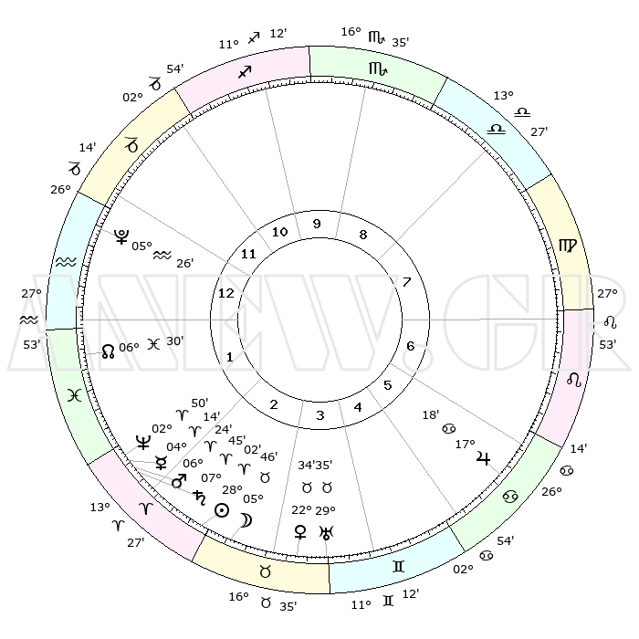| | ΘΕΣΕΙΣ ΠΛΑΝΗΤΩΝ ΑΣΤΡΟΛΟΓΙΚΟΥ ΧΑΡΤΗ ΤΗΣ ΣΤΙΓΜΗΣ ΑΥΤΗΣ | | | | Πλανήτης | Ζώδιο | Μοίρες | Δεκαήμ. | Σε οίκο | Απόκλιση | | Ακμές των οίκων | | Ηλιος | Κριός | 27°59' | Τρίτο | 3 | 10 N 45 | | 1ος | 28°50' | Αιγόκερως | | Σελήνη | Ταύρος | 04°52' | Πρώτο | 3 | 17 N 11 | | 2ος | 12°44' | Ιχθείς | | Ερμής | Κριός | 04°09' | Πρώτο | 2 | 00 S 46 | | 3ος | 21°21' | Κριός | | Αφροδίτη | Ταύρος | 22°29' | Τρίτο | 4 | 18 N 41 | | 4ος | 20°01' | Ταύρος | | Αρης | Κριός | 06°22' | Πρώτο | 2 | 01 N 38 | | 5ος | 12°52' | Δίδυμοι | | Δίας | Καρκίνος | 17°17' | Δεύτερο | 6 | 22 N 42 | | 6ος | 04°15' | Καρκίνος | | Κρόνος | Κριός | 07°45' | Πρώτο | 2 | 01 N 06 | | 7ος | 28°50' | Καρκίνος | | Ουρανός | Ταύρος | 29°35' | Τρίτο | 4 | 19 N 53 | | 8ος | 12°44' | Παρθένος | | Ποσειδώνας | Κριός | 02°50' | Πρώτο | 2 | 00 S 05 | | 9ος | 21°21' | Ζυγός | | Πλούτωνας | Υδροχόος | 05°26' | Πρώτο | 1 | 22 S 47 | | 10ος | 20°01' | Σκορπιός | | Β. Δεσμός | Ιχθείς | 06°30' | Πρώτο | 1 | 09 S 07 | | 11ος | 12°52' | Τοξότης | | Ωροσκόπος | Αιγόκερως | 28°50' | Τρίτο | | | 12ος | 04°15' | Αιγόκερως | | Μεσουράνημα | Σκορπιός | 20°01' | Τρίτο | | | |