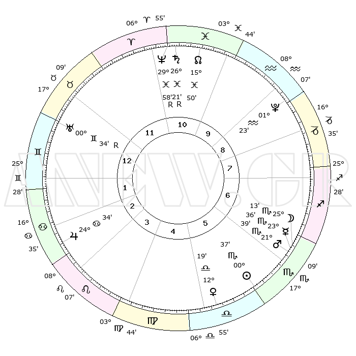 | | ΘΕΣΕΙΣ ΠΛΑΝΗΤΩΝ ΑΣΤΡΟΛΟΓΙΚΟΥ ΧΑΡΤΗ ΤΗΣ ΣΤΙΓΜΗΣ ΑΥΤΗΣ | | | | Πλανήτης | Ζώδιο | Μοίρες | Δεκαήμ. | Σε οίκο | Απόκλιση | | Ακμές των οίκων | | Ηλιος | Σκορπιός | 00°28' | Πρώτο | 7 | 11 S 38 | | 1ος | 18°58' | Κριός | | Σελήνη | Σκορπιός | 23°27' | Τρίτο | 7 | 23 S 10 | | 2ος | 24°15' | Ταύρος | | Ερμής | Σκορπιός | 23°25' | Τρίτο | 7 | 21 S 04 | | 3ος | 19°03' | Δίδυμοι | | Αφροδίτη | Ζυγός | 12°07' | Δεύτερο | 6 | 03 S 23 | | 4ος | 10°48' | Καρκίνος | | Αρης | Σκορπιός | 21°33' | Τρίτο | 7 | 18 S 27 | | 5ος | 04°14' | Λέων | | Δίας | Καρκίνος | 24°34' | Τρίτο | 4 | 21 N 16 | | 6ος | 04°51' | Παρθένος | | Κρόνος | Ιχθείς | 26°21'R | Τρίτο | 12 | 03 S 44 | | 7ος | 18°58' | Ζυγός | | Ουρανός | Δίδυμοι | 00°35'R | Πρώτο | 2 | 20 N 04 | | 8ος | 24°15' | Σκορπιός | | Ποσειδώνας | Ιχθείς | 29°58'R | Τρίτο | 12 | 01 S 16 | | 9ος | 19°03' | Τοξότης | | Πλούτωνας | Υδροχόος | 01°23' | Πρώτο | 10 | 23 S 32 | | 10ος | 10°48' | Αιγόκερως | | Β. Δεσμός | Ιχθείς | 15°51' | Δεύτερο | 12 | 05 S 35 | | 11ος | 04°14' | Υδροχόος | | Ωροσκόπος | Κριός | 18°58' | Δεύτερο | | | 12ος | 04°51' | Ιχθείς | | Μεσουράνημα | Αιγόκερως | 10°48' | Δεύτερο | | | |