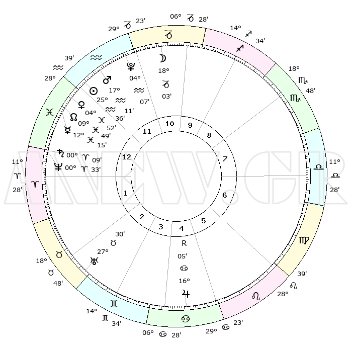 | | ΘΕΣΕΙΣ ΠΛΑΝΗΤΩΝ ΑΣΤΡΟΛΟΓΙΚΟΥ ΧΑΡΤΗ ΤΗΣ ΣΤΙΓΜΗΣ ΑΥΤΗΣ | | | | Πλανήτης | Ζώδιο | Μοίρες | Δεκαήμ. | Σε οίκο | Απόκλιση | | Ακμές των οίκων | | Ηλιος | Υδροχόος | 25°31' | Τρίτο | 1 | 13 S 01 | | 1ος | 24°42' | Υδροχόος | | Σελήνη | Αιγόκερως | 17°02' | Δεύτερο | 11 | 26 S 28 | | 2ος | 10°25' | Κριός | | Ερμής | Ιχθείς | 12°07' | Δεύτερο | 1 | 07 S 07 | | 3ος | 14°12' | Ταύρος | | Αφροδίτη | Ιχθείς | 04°46' | Πρώτο | 1 | 11 S 08 | | 4ος | 09°09' | Δίδυμοι | | Αρης | Υδροχόος | 17°07' | Δεύτερο | 12 | 16 S 44 | | 5ος | 00°53' | Καρκίνος | | Δίας | Καρκίνος | 16°05'R | Δεύτερο | 5 | 22 N 47 | | 6ος | 23°56' | Καρκίνος | | Κρόνος | Κριός | 00°08' | Πρώτο | 1 | 01 S 55 | | 7ος | 24°42' | Λέων | | Ουρανός | Ταύρος | 27°30' | Τρίτο | 3 | 19 N 25 | | 8ος | 10°25' | Ζυγός | | Ποσειδώνας | Κριός | 00°33' | Πρώτο | 1 | 00 S 59 | | 9ος | 14°12' | Σκορπιός | | Πλούτωνας | Υδροχόος | 04°07' | Πρώτο | 12 | 22 S 57 | | 10ος | 09°09' | Τοξότης | | Β. Δεσμός | Ιχθείς | 09°50' | Πρώτο | 1 | 07 S 53 | | 11ος | 00°53' | Αιγόκερως | | Ωροσκόπος | Υδροχόος | 24°42' | Τρίτο | | | 12ος | 23°56' | Αιγόκερως | | Μεσουράνημα | Τοξότης | 09°09' | Πρώτο | | | |