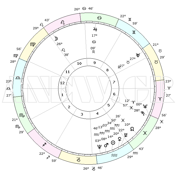 | | ΘΕΣΕΙΣ ΠΛΑΝΗΤΩΝ ΑΣΤΡΟΛΟΓΙΚΟΥ ΧΑΡΤΗ ΤΗΣ ΣΤΙΓΜΗΣ ΑΥΤΗΣ | | | | Πλανήτης | Ζώδιο | Μοίρες | Δεκαήμ. | Σε οίκο | Απόκλιση | | Ακμές των οίκων | | Ηλιος | Υδροχόος | 13°60' | Δεύτερο | 5 | 16 S 37 | | 1ος | 08°22' | Ζυγός | | Σελήνη | Λέων | 25°55' | Τρίτο | 11 | 14 N 00 | | 2ος | 05°31' | Σκορπιός | | Ερμής | Υδροχόος | 22°45' | Τρίτο | 5 | 15 S 35 | | 3ος | 06°17' | Τοξότης | | Αφροδίτη | Υδροχόος | 20°30' | Τρίτο | 5 | 15 S 58 | | 4ος | 09°25' | Αιγόκερως | | Αρης | Υδροχόος | 08°11' | Πρώτο | 4 | 19 S 14 | | 5ος | 12°21' | Υδροχόος | | Δίας | Καρκίνος | 17°09'R | Δεύτερο | 10 | 22 N 38 | | 6ος | 12°26' | Ιχθείς | | Κρόνος | Ιχθείς | 28°56' | Τρίτο | 6 | 02 S 25 | | 7ος | 08°22' | Κριός | | Ουρανός | Ταύρος | 27°27'R | Τρίτο | 8 | 19 N 24 | | 8ος | 05°31' | Ταύρος | | Ποσειδώνας | Κριός | 00°12' | Πρώτο | 6 | 01 S 08 | | 9ος | 06°17' | Δίδυμοι | | Πλούτωνας | Υδροχόος | 03°46' | Πρώτο | 4 | 23 S 01 | | 10ος | 09°25' | Καρκίνος | | Β. Δεσμός | Ιχθείς | 10°26' | Δεύτερο | 5 | 07 S 39 | | 11ος | 12°21' | Λέων | | Ωροσκόπος | Ζυγός | 08°22' | Πρώτο | | | 12ος | 12°26' | Παρθένος | | Μεσουράνημα | Καρκίνος | 09°25' | Πρώτο | | | |