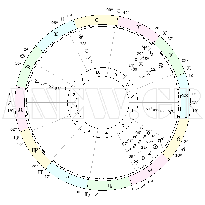 | | ΘΕΣΕΙΣ ΠΛΑΝΗΤΩΝ ΑΣΤΡΟΛΟΓΙΚΟΥ ΧΑΡΤΗ ΤΗΣ ΣΤΙΓΜΗΣ ΑΥΤΗΣ | | | | Πλανήτης | Ζώδιο | Μοίρες | Δεκαήμ. | Σε οίκο | Απόκλιση | | Ακμές των οίκων | | Ηλιος | Τοξότης | 27°02' | Τρίτο | 6 | 23 S 24 | | 1ος | 25°07' | Καρκίνος | | Σελήνη | Τοξότης | 12°11' | Δεύτερο | 5 | 27 S 12 | | 2ος | 15°52' | Λέων | | Ερμής | Τοξότης | 09°03' | Πρώτο | 5 | 20 S 45 | | 3ος | 10°16' | Παρθένος | | Αφροδίτη | Τοξότης | 22°30' | Τρίτο | 5 | 23 S 12 | | 4ος | 10°38' | Ζυγός | | Αρης | Αιγόκερως | 02°35' | Πρώτο | 6 | 24 S 13 | | 5ος | 16°44' | Σκορπιός | | Δίας | Καρκίνος | 22°58'R | Τρίτο | 12 | 21 N 41 | | 6ος | 23°16' | Τοξότης | | Κρόνος | Ιχθείς | 25°39' | Τρίτο | 9 | 03 S 51 | | 7ος | 25°07' | Αιγόκερως | | Ουρανός | Ταύρος | 28°22'R | Τρίτο | 11 | 19 N 36 | | 8ος | 15°52' | Υδροχόος | | Ποσειδώνας | Ιχθείς | 29°24' | Τρίτο | 9 | 01 S 28 | | 9ος | 10°16' | Ιχθείς | | Πλούτωνας | Υδροχόος | 02°20' | Πρώτο | 7 | 23 S 18 | | 10ος | 10°38' | Κριός | | Β. Δεσμός | Ιχθείς | 12°52' | Δεύτερο | 9 | 06 S 44 | | 11ος | 16°44' | Ταύρος | | Ωροσκόπος | Καρκίνος | 25°07' | Τρίτο | | | 12ος | 23°16' | Δίδυμοι | | Μεσουράνημα | Κριός | 10°38' | Δεύτερο | | | |