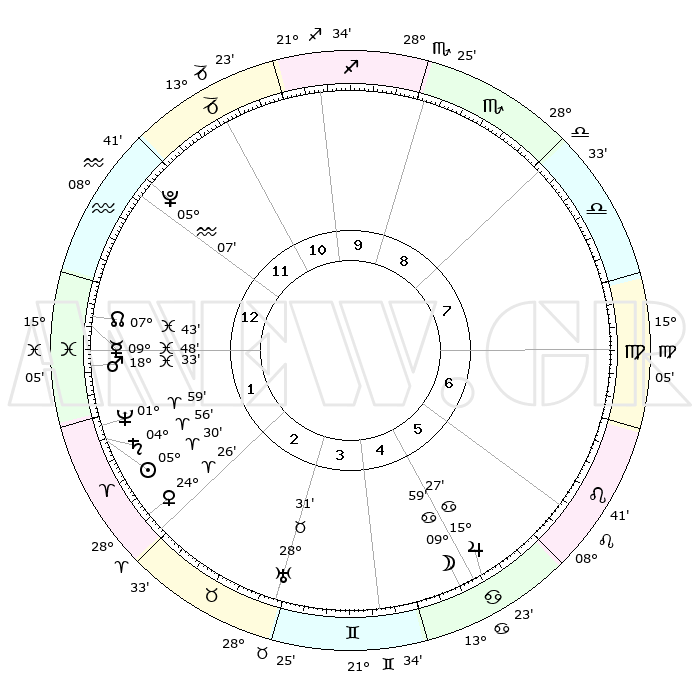 | | ΘΕΣΕΙΣ ΠΛΑΝΗΤΩΝ ΑΣΤΡΟΛΟΓΙΚΟΥ ΧΑΡΤΗ ΤΗΣ ΣΤΙΓΜΗΣ ΑΥΤΗΣ | | | | Πλανήτης | Ζώδιο | Μοίρες | Δεκαήμ. | Σε οίκο | Απόκλιση | | Ακμές των οίκων | | Ηλιος | Κριός | 05°25' | Πρώτο | 2 | 02 N 09 | | 1ος | 05°38' | Υδροχόος | | Σελήνη | Καρκίνος | 08°55' | Πρώτο | 5 | 27 N 39 | | 2ος | 20°33' | Ιχθείς | | Ερμής | Ιχθείς | 09°45' | Πρώτο | 1 | 08 S 07 | | 3ος | 28°03' | Κριός | | Αφροδίτη | Κριός | 24°21' | Τρίτο | 2 | 08 N 48 | | 4ος | 25°34' | Ταύρος | | Αρης | Ιχθείς | 18°29' | Δεύτερο | 1 | 05 S 32 | | 5ος | 17°58' | Δίδυμοι | | Δίας | Καρκίνος | 15°27' | Δεύτερο | 6 | 22 N 54 | | 6ος | 09°37' | Καρκίνος | | Κρόνος | Κριός | 04°55' | Πρώτο | 2 | 00 N 00 | | 7ος | 05°38' | Λέων | | Ουρανός | Ταύρος | 28°31' | Τρίτο | 4 | 19 N 39 | | 8ος | 20°33' | Παρθένος | | Ποσειδώνας | Κριός | 01°59' | Πρώτο | 2 | 00 S 25 | | 9ος | 28°03' | Ζυγός | | Πλούτωνας | Υδροχόος | 05°07' | Πρώτο | 12 | 22 S 48 | | 10ος | 25°34' | Σκορπιός | | Β. Δεσμός | Ιχθείς | 07°43' | Πρώτο | 1 | 08 S 40 | | 11ος | 17°58' | Τοξότης | | Ωροσκόπος | Υδροχόος | 05°38' | Πρώτο | | | 12ος | 09°37' | Αιγόκερως | | Μεσουράνημα | Σκορπιός | 25°34' | Τρίτο | | | |