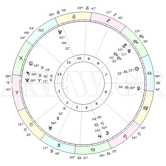 | ΘΕΣΕΙΣ ΠΛΑΝΗΤΩΝ ΑΣΤΡΟΛΟΓΙΚΟΥ ΧΑΡΤΗ ΤΗΣ ΣΤΙΓΜΗΣ ΑΥΤΗΣ | | Πλανήτης | Ζώδιο | Μοίρες | Δεκαήμ. | Σε οίκο | Απόκλιση | | Ακμές των οίκων | Ηλιος | Ζυγός | 21°22' | Τρίτο | 9 | 08 S 20 | | 1ος | 16°03' | Αιγόκερως | Σελήνη | Λέων | 00°17' | Πρώτο | 7 | 23 N 51 | | 2ος | 27°16' | Υδροχόος | Ερμής | Σκορπιός | 11°20' | Δεύτερο | 10 | 16 S 49 | | 3ος | 07°19' | Κριός | Αφροδίτη | Ζυγός | 00°44' | Πρώτο | 8 | 01 N 05 | | 4ος | 08°21' | Ταύρος | Αρης | Σκορπιός | 15°08' | Δεύτερο | 10 | 16 S 35 | | 5ος | 02°25' | Δίδυμοι | Δίας | Καρκίνος | 23°53' | Τρίτο | 7 | 21 N 22 | | 6ος | 23°39' | Δίδυμοι | Κρόνος | Ιχθείς | 26°55'R | Τρίτο | 2 | 03 S 31 | | 7ος | 16°03' | Καρκίνος | Ουρανός | Δίδυμοι | 00°52'R | Πρώτο | 4 | 20 N 07 | | 8ος | 27°16' | Λέων | Ποσειδώνας | Κριός | 00°11'R | Πρώτο | 2 | 01 S 11 | | 9ος | 07°19' | Ζυγός | Πλούτωνας | Υδροχόος | 01°22' | Πρώτο | 1 | 23 S 32 | | 10ος | 08°21' | Σκορπιός | Β. Δεσμός | Ιχθείς | 16°20' | Δεύτερο | 2 | 05 S 24 | | 11ος | 02°25' | Τοξότης | Ωροσκόπος | Αιγόκερως | 16°03' | Δεύτερο | | | 12ος | 23°39' | Τοξότης | Μεσουράνημα | Σκορπιός | 08°21' | Πρώτο | | | |