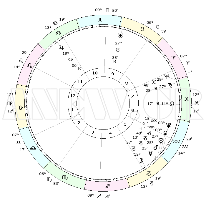 | | ΘΕΣΕΙΣ ΠΛΑΝΗΤΩΝ ΑΣΤΡΟΛΟΓΙΚΟΥ ΧΑΡΤΗ ΤΗΣ ΣΤΙΓΜΗΣ ΑΥΤΗΣ | | | | Πλανήτης | Ζώδιο | Μοίρες | Δεκαήμ. | Σε οίκο | Απόκλιση | | Ακμές των οίκων | | Ηλιος | Αιγόκερως | 27°36' | Τρίτο | 6 | 20 S 38 | | 1ος | 18°45' | Λέων | | Σελήνη | Αιγόκερως | 14°58' | Δεύτερο | 5 | 26 S 46 | | 2ος | 11°25' | Παρθένος | | Ερμής | Αιγόκερως | 25°05' | Τρίτο | 6 | 23 S 00 | | 3ος | 08°55' | Ζυγός | | Αφροδίτη | Υδροχόος | 00°15' | Πρώτο | 6 | 21 S 07 | | 4ος | 11°32' | Σκορπιός | | Αρης | Αιγόκερως | 25°36' | Τρίτο | 6 | 21 S 59 | | 5ος | 16°32' | Τοξότης | | Δίας | Καρκίνος | 19°07'R | Δεύτερο | 11 | 22 N 21 | | 6ος | 19°34' | Αιγόκερως | | Κρόνος | Ιχθείς | 27°28' | Τρίτο | 8 | 03 S 02 | | 7ος | 18°45' | Υδροχόος | | Ουρανός | Ταύρος | 27°35'R | Τρίτο | 10 | 19 N 26 | | 8ος | 11°25' | Ιχθείς | | Ποσειδώνας | Ιχθείς | 29°48' | Τρίτο | 8 | 01 S 18 | | 9ος | 08°55' | Κριός | | Πλούτωνας | Υδροχόος | 03°15' | Πρώτο | 6 | 23 S 07 | | 10ος | 11°32' | Ταύρος | | Β. Δεσμός | Ιχθείς | 11°17' | Δεύτερο | 7 | 07 S 20 | | 11ος | 16°32' | Δίδυμοι | | Ωροσκόπος | Λέων | 18°45' | Δεύτερο | | | 12ος | 19°34' | Καρκίνος | | Μεσουράνημα | Ταύρος | 11°32' | Δεύτερο | | | |