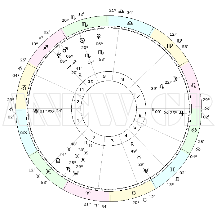 | | ΘΕΣΕΙΣ ΠΛΑΝΗΤΩΝ ΑΣΤΡΟΛΟΓΙΚΟΥ ΧΑΡΤΗ ΤΗΣ ΣΤΙΓΜΗΣ ΑΥΤΗΣ | | | | Πλανήτης | Ζώδιο | Μοίρες | Δεκαήμ. | Σε οίκο | Απόκλιση | | Ακμές των οίκων | | Ηλιος | Σκορπιός | 20°13' | Τρίτο | 10 | 17 S 48 | | 1ος | 04°37' | Αιγόκερως | | Σελήνη | Λέων | 21°48' | Τρίτο | 8 | 16 N 13 | | 2ος | 12°57' | Υδροχόος | | Ερμής | Τοξότης | 06°21'R | Πρώτο | 11 | 23 S 13 | | 3ος | 23°12' | Ιχθείς | | Αφροδίτη | Σκορπιός | 06°48' | Πρώτο | 10 | 12 S 35 | | 4ος | 26°21' | Κριός | | Αρης | Τοξότης | 05°38' | Πρώτο | 11 | 21 S 44 | | 5ος | 21°57' | Ταύρος | | Δίας | Καρκίνος | 25°09'R | Τρίτο | 7 | 21 N 13 | | 6ος | 13°30' | Δίδυμοι | | Κρόνος | Ιχθείς | 25°30'R | Τρίτο | 3 | 04 S 01 | | 7ος | 04°37' | Καρκίνος | | Ουρανός | Ταύρος | 29°49'R | Τρίτο | 5 | 19 N 54 | | 8ος | 12°57' | Λέων | | Ποσειδώνας | Ιχθείς | 29°35'R | Τρίτο | 3 | 01 S 25 | | 9ος | 23°12' | Παρθένος | | Πλούτωνας | Υδροχόος | 01°34' | Πρώτο | 1 | 23 S 29 | | 10ος | 26°21' | Ζυγός | | Β. Δεσμός | Ιχθείς | 14°48' | Δεύτερο | 2 | 05 S 59 | | 11ος | 21°57' | Σκορπιός | | Ωροσκόπος | Αιγόκερως | 04°37' | Πρώτο | | | 12ος | 13°30' | Τοξότης | | Μεσουράνημα | Ζυγός | 26°21' | Τρίτο | | | |