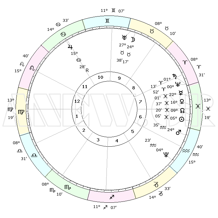| | ΘΕΣΕΙΣ ΠΛΑΝΗΤΩΝ ΑΣΤΡΟΛΟΓΙΚΟΥ ΧΑΡΤΗ ΤΗΣ ΣΤΙΓΜΗΣ ΑΥΤΗΣ | | | | Πλανήτης | Ζώδιο | Μοίρες | Δεκαήμ. | Σε οίκο | Απόκλιση | | Ακμές των οίκων | | Ηλιος | Ιχθείς | 05°00' | Πρώτο | 7 | 09 S 40 | | 1ος | 20°39' | Λέων | | Σελήνη | Ταύρος | 23°11' | Τρίτο | 10 | 23 N 29 | | 2ος | 13°31' | Παρθένος | | Ερμής | Ιχθείς | 21°59' | Τρίτο | 8 | 01 S 11 | | 3ος | 11°14' | Ζυγός | | Αφροδίτη | Ιχθείς | 16°31' | Δεύτερο | 8 | 06 S 38 | | 4ος | 13°56' | Σκορπιός | | Αρης | Υδροχόος | 24°31' | Τρίτο | 7 | 14 S 23 | | 5ος | 18°48' | Τοξότης | | Δίας | Καρκίνος | 15°29'R | Δεύτερο | 11 | 22 N 52 | | 6ος | 21°37' | Αιγόκερως | | Κρόνος | Κριός | 01°12' | Πρώτο | 8 | 01 S 29 | | 7ος | 20°39' | Υδροχόος | | Ουρανός | Ταύρος | 27°38' | Τρίτο | 10 | 19 N 27 | | 8ος | 13°31' | Ιχθείς | | Ποσειδώνας | Κριός | 00°52' | Πρώτο | 8 | 00 S 52 | | 9ος | 11°14' | Κριός | | Πλούτωνας | Υδροχόος | 04°23' | Πρώτο | 6 | 22 S 54 | | 10ος | 13°56' | Ταύρος | | Β. Δεσμός | Ιχθείς | 09°20' | Πρώτο | 7 | 08 S 04 | | 11ος | 18°48' | Δίδυμοι | | Ωροσκόπος | Λέων | 20°39' | Τρίτο | | | 12ος | 21°37' | Καρκίνος | | Μεσουράνημα | Ταύρος | 13°56' | Δεύτερο | | | |