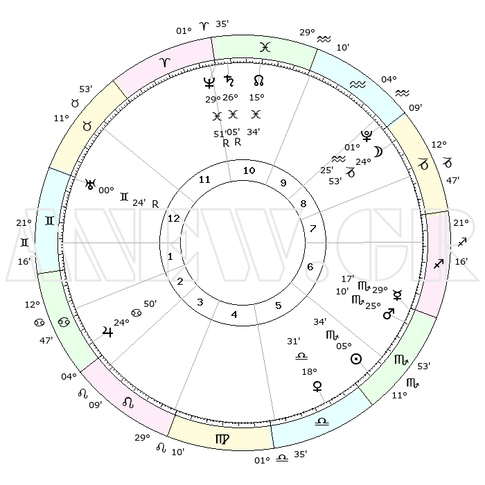 | | ΘΕΣΕΙΣ ΠΛΑΝΗΤΩΝ ΑΣΤΡΟΛΟΓΙΚΟΥ ΧΑΡΤΗ ΤΗΣ ΣΤΙΓΜΗΣ ΑΥΤΗΣ | | | | Πλανήτης | Ζώδιο | Μοίρες | Δεκαήμ. | Σε οίκο | Απόκλιση | | Ακμές των οίκων | | Ηλιος | Σκορπιός | 05°09' | Πρώτο | 11 | 13 S 14 | | 1ος | 13°56' | Τοξότης | | Σελήνη | Αιγόκερως | 19°45' | Δεύτερο | 2 | 26 S 15 | | 2ος | 17°25' | Αιγόκερως | | Ερμής | Σκορπιός | 28°50' | Τρίτο | 12 | 22 S 38 | | 3ος | 25°27' | Υδροχόος | | Αφροδίτη | Ζυγός | 17°60' | Δεύτερο | 10 | 05 S 40 | | 4ος | 01°14' | Κριός | | Αρης | Σκορπιός | 24°52' | Τρίτο | 12 | 19 S 20 | | 5ος | 00°13' | Ταύρος | | Δίας | Καρκίνος | 24°49' | Τρίτο | 8 | 21 N 14 | | 6ος | 23°29' | Ταύρος | | Κρόνος | Ιχθείς | 26°06'R | Τρίτο | 3 | 03 S 49 | | 7ος | 13°56' | Δίδυμοι | | Ουρανός | Δίδυμοι | 00°25'R | Πρώτο | 6 | 20 N 02 | | 8ος | 17°25' | Καρκίνος | | Ποσειδώνας | Ιχθείς | 29°52'R | Τρίτο | 3 | 01 S 19 | | 9ος | 25°27' | Λέων | | Πλούτωνας | Υδροχόος | 01°25' | Πρώτο | 2 | 23 S 31 | | 10ος | 01°14' | Ζυγός | | Β. Δεσμός | Ιχθείς | 15°36' | Δεύτερο | 3 | 05 S 41 | | 11ος | 00°13' | Σκορπιός | | Ωροσκόπος | Τοξότης | 13°56' | Δεύτερο | | | 12ος | 23°29' | Σκορπιός | | Μεσουράνημα | Ζυγός | 01°14' | Πρώτο | | | |
