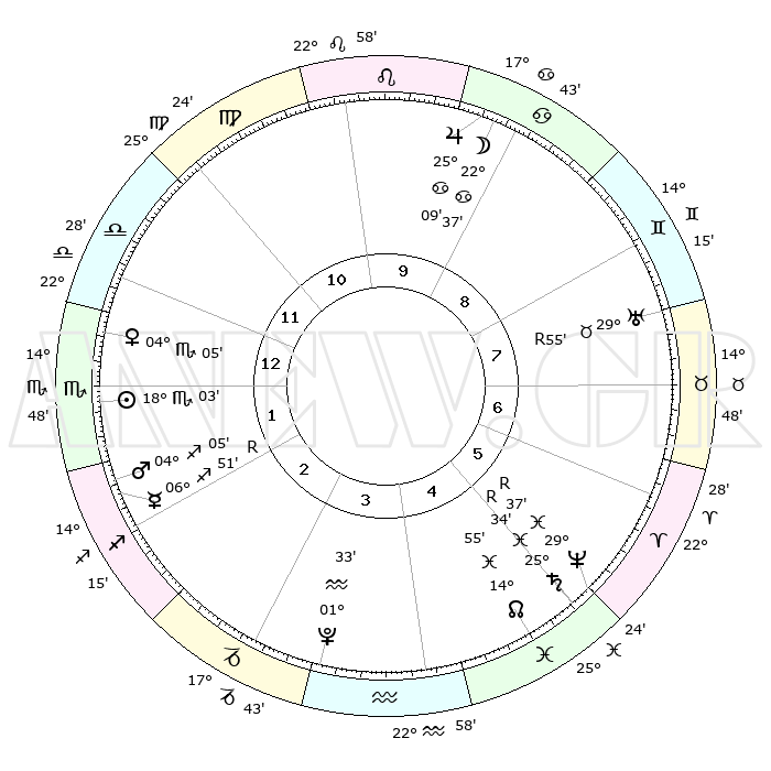 | | ΘΕΣΕΙΣ ΠΛΑΝΗΤΩΝ ΑΣΤΡΟΛΟΓΙΚΟΥ ΧΑΡΤΗ ΤΗΣ ΣΤΙΓΜΗΣ ΑΥΤΗΣ | | | | Πλανήτης | Ζώδιο | Μοίρες | Δεκαήμ. | Σε οίκο | Απόκλιση | | Ακμές των οίκων | | Ηλιος | Σκορπιός | 17°59' | Δεύτερο | 1 | 17 S 11 | | 1ος | 26°27' | Ζυγός | | Σελήνη | Καρκίνος | 21°44' | Τρίτο | 9 | 25 N 46 | | 2ος | 24°40' | Σκορπιός | | Ερμής | Τοξότης | 06°51'R | Πρώτο | 2 | 23 S 43 | | 3ος | 26°21' | Τοξότης | | Αφροδίτη | Σκορπιός | 04°01' | Πρώτο | 1 | 11 S 37 | | 4ος | 00°19' | Υδροχόος | | Αρης | Τοξότης | 04°02' | Πρώτο | 2 | 21 S 25 | | 5ος | 03°15' | Ιχθείς | | Δίας | Καρκίνος | 25°09' | Τρίτο | 9 | 21 N 12 | | 6ος | 02°14' | Κριός | | Κρόνος | Ιχθείς | 25°34'R | Τρίτο | 5 | 04 S 00 | | 7ος | 26°27' | Κριός | | Ουρανός | Ταύρος | 29°55'R | Τρίτο | 8 | 19 N 55 | | 8ος | 24°40' | Ταύρος | | Ποσειδώνας | Ιχθείς | 29°37'R | Τρίτο | 5 | 01 S 24 | | 9ος | 26°21' | Δίδυμοι | | Πλούτωνας | Υδροχόος | 01°33' | Πρώτο | 4 | 23 S 29 | | 10ος | 00°19' | Λέων | | Β. Δεσμός | Ιχθείς | 14°55' | Δεύτερο | 5 | 05 S 56 | | 11ος | 03°15' | Παρθένος | | Ωροσκόπος | Ζυγός | 26°27' | Τρίτο | | | 12ος | 02°14' | Ζυγός | | Μεσουράνημα | Λέων | 00°19' | Πρώτο | | | |
