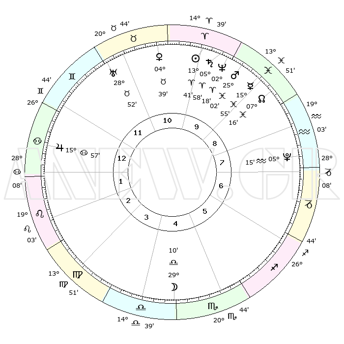 | | ΘΕΣΕΙΣ ΠΛΑΝΗΤΩΝ ΑΣΤΡΟΛΟΓΙΚΟΥ ΧΑΡΤΗ ΤΗΣ ΣΤΙΓΜΗΣ ΑΥΤΗΣ | | | | Πλανήτης | Ζώδιο | Μοίρες | Δεκαήμ. | Σε οίκο | Απόκλιση | | Ακμές των οίκων | | Ηλιος | Κριός | 13°37' | Δεύτερο | 10 | 05 N 22 | | 1ος | 06°52' | Καρκίνος | | Σελήνη | Ζυγός | 28°18' | Τρίτο | 5 | 14 S 33 | | 2ος | 27°22' | Καρκίνος | | Ερμής | Ιχθείς | 15°51' | Δεύτερο | 9 | 07 S 06 | | 3ος | 19°42' | Λέων | | Αφροδίτη | Ταύρος | 04°34' | Πρώτο | 11 | 12 N 43 | | 4ος | 17°08' | Παρθένος | | Αρης | Ιχθείς | 24°59' | Τρίτο | 10 | 02 S 57 | | 5ος | 22°03' | Ζυγός | | Δίας | Καρκίνος | 15°57' | Δεύτερο | 1 | 22 N 51 | | 6ος | 01°24' | Τοξότης | | Κρόνος | Κριός | 05°57' | Πρώτο | 10 | 00 N 24 | | 7ος | 06°52' | Αιγόκερως | | Ουρανός | Ταύρος | 28°52' | Τρίτο | 11 | 19 N 44 | | 8ος | 27°22' | Αιγόκερως | | Ποσειδώνας | Κριός | 02°18' | Πρώτο | 10 | 00 S 17 | | 9ος | 19°42' | Υδροχόος | | Πλούτωνας | Υδροχόος | 05°15' | Πρώτο | 8 | 22 S 47 | | 10ος | 17°08' | Ιχθείς | | Β. Δεσμός | Ιχθείς | 07°17' | Πρώτο | 9 | 08 S 50 | | 11ος | 22°03' | Κριός | | Ωροσκόπος | Καρκίνος | 06°52' | Πρώτο | | | 12ος | 01°24' | Δίδυμοι | | Μεσουράνημα | Ιχθείς | 17°08' | Δεύτερο | | | |