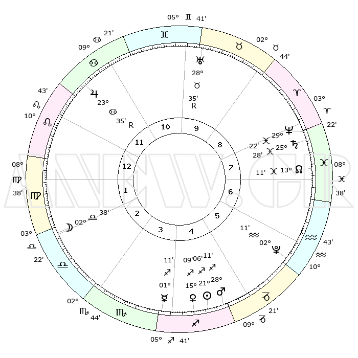 | | ΘΕΣΕΙΣ ΠΛΑΝΗΤΩΝ ΑΣΤΡΟΛΟΓΙΚΟΥ ΧΑΡΤΗ ΤΗΣ ΣΤΙΓΜΗΣ ΑΥΤΗΣ | | | | Πλανήτης | Ζώδιο | Μοίρες | Δεκαήμ. | Σε οίκο | Απόκλιση | | Ακμές των οίκων | | Ηλιος | Τοξότης | 20°57' | Τρίτο | 5 | 23 S 07 | | 1ος | 24°35' | Καρκίνος | | Σελήνη | Ζυγός | 00°47' | Πρώτο | 3 | 01 S 43 | | 2ος | 15°18' | Λέων | | Ερμής | Τοξότης | 00°59' | Πρώτο | 5 | 18 S 35 | | 3ος | 09°38' | Παρθένος | | Αφροδίτη | Τοξότης | 14°58' | Δεύτερο | 5 | 22 S 20 | | 4ος | 09°56' | Ζυγός | | Αρης | Τοξότης | 28°04' | Τρίτο | 6 | 24 S 11 | | 5ος | 16°02' | Σκορπιός | | Δίας | Καρκίνος | 23°35'R | Τρίτο | 12 | 21 N 34 | | 6ος | 22°39' | Τοξότης | | Κρόνος | Ιχθείς | 25°28' | Τρίτο | 9 | 03 S 56 | | 7ος | 24°35' | Αιγόκερως | | Ουρανός | Ταύρος | 28°35'R | Τρίτο | 11 | 19 N 38 | | 8ος | 15°18' | Υδροχόος | | Ποσειδώνας | Ιχθείς | 29°22' | Τρίτο | 9 | 01 S 29 | | 9ος | 09°38' | Ιχθείς | | Πλούτωνας | Υδροχόος | 02°11' | Πρώτο | 7 | 23 S 20 | | 10ος | 09°56' | Κριός | | Β. Δεσμός | Ιχθείς | 13°11' | Δεύτερο | 9 | 06 S 36 | | 11ος | 16°02' | Ταύρος | | Ωροσκόπος | Καρκίνος | 24°35' | Τρίτο | | | 12ος | 22°39' | Δίδυμοι | | Μεσουράνημα | Κριός | 09°56' | Πρώτο | | | |