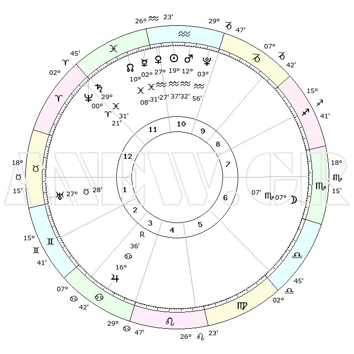 | | ΘΕΣΕΙΣ ΠΛΑΝΗΤΩΝ ΑΣΤΡΟΛΟΓΙΚΟΥ ΧΑΡΤΗ ΤΗΣ ΣΤΙΓΜΗΣ ΑΥΤΗΣ | | | | Πλανήτης | Ζώδιο | Μοίρες | Δεκαήμ. | Σε οίκο | Απόκλιση | | Ακμές των οίκων | | Ηλιος | Υδροχόος | 19°33' | Δεύτερο | 11 | 14 S 57 | | 1ος | 09°36' | Κριός | | Σελήνη | Σκορπιός | 06°15' | Πρώτο | 7 | 17 S 46 | | 2ος | 17°27' | Ταύρος | | Ερμής | Ιχθείς | 02°24' | Πρώτο | 12 | 11 S 42 | | 3ος | 13°27' | Δίδυμοι | | Αφροδίτη | Υδροχόος | 27°22' | Τρίτο | 12 | 13 S 44 | | 4ος | 05°24' | Καρκίνος | | Αρης | Υδροχόος | 12°28' | Δεύτερο | 11 | 18 S 05 | | 5ος | 28°12' | Καρκίνος | | Δίας | Καρκίνος | 16°36'R | Δεύτερο | 4 | 22 N 43 | | 6ος | 27°09' | Λέων | | Κρόνος | Ιχθείς | 29°30' | Τρίτο | 12 | 02 S 11 | | 7ος | 09°36' | Ζυγός | | Ουρανός | Ταύρος | 27°28' | Τρίτο | 2 | 19 N 24 | | 8ος | 17°27' | Σκορπιός | | Ποσειδώνας | Κριός | 00°21' | Πρώτο | 12 | 01 S 04 | | 9ος | 13°27' | Τοξότης | | Πλούτωνας | Υδροχόος | 03°56' | Πρώτο | 11 | 22 S 59 | | 10ος | 05°24' | Αιγόκερως | | Β. Δεσμός | Ιχθείς | 10°08' | Δεύτερο | 12 | 07 S 46 | | 11ος | 28°12' | Αιγόκερως | | Ωροσκόπος | Κριός | 09°36' | Πρώτο | | | 12ος | 27°09' | Υδροχόος | | Μεσουράνημα | Αιγόκερως | 05°24' | Πρώτο | | | |
