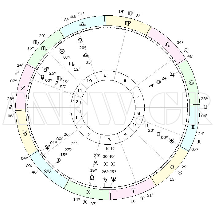 | | ΘΕΣΕΙΣ ΠΛΑΝΗΤΩΝ ΑΣΤΡΟΛΟΓΙΚΟΥ ΧΑΡΤΗ ΤΗΣ ΣΤΙΓΜΗΣ ΑΥΤΗΣ | | | | Πλανήτης | Ζώδιο | Μοίρες | Δεκαήμ. | Σε οίκο | Απόκλιση | | Ακμές των οίκων | | Ηλιος | Σκορπιός | 07°06' | Πρώτο | 12 | 13 S 53 | | 1ος | 27°26' | Σκορπιός | | Σελήνη | Υδροχόος | 14°03' | Δεύτερο | 3 | 19 S 17 | | 2ος | 28°13' | Τοξότης | | Ερμής | Τοξότης | 00°49' | Πρώτο | 1 | 23 S 08 | | 3ος | 03°30' | Υδροχόος | | Αφροδίτη | Ζυγός | 20°25' | Τρίτο | 11 | 06 S 36 | | 4ος | 09°29' | Ιχθείς | | Αρης | Σκορπιός | 26°15' | Τρίτο | 12 | 19 S 40 | | 5ος | 10°49' | Κριός | | Δίας | Καρκίνος | 24°54' | Τρίτο | 8 | 21 N 13 | | 6ος | 06°13' | Ταύρος | | Κρόνος | Ιχθείς | 26°00'R | Τρίτο | 4 | 03 S 51 | | 7ος | 27°26' | Ταύρος | | Ουρανός | Δίδυμοι | 00°20'R | Πρώτο | 7 | 20 N 01 | | 8ος | 28°13' | Δίδυμοι | | Ποσειδώνας | Ιχθείς | 29°49'R | Τρίτο | 4 | 01 S 20 | | 9ος | 03°30' | Λέων | | Πλούτωνας | Υδροχόος | 01°26' | Πρώτο | 2 | 23 S 31 | | 10ος | 09°29' | Παρθένος | | Β. Δεσμός | Ιχθείς | 15°29' | Δεύτερο | 4 | 05 S 43 | | 11ος | 10°49' | Ζυγός | | Ωροσκόπος | Σκορπιός | 27°26' | Τρίτο | | | 12ος | 06°13' | Σκορπιός | | Μεσουράνημα | Παρθένος | 09°29' | Πρώτο | | | |