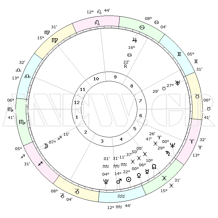 | | ΘΕΣΕΙΣ ΠΛΑΝΗΤΩΝ ΑΣΤΡΟΛΟΓΙΚΟΥ ΧΑΡΤΗ ΤΗΣ ΣΤΙΓΜΗΣ ΑΥΤΗΣ | | | | Πλανήτης | Ζώδιο | Μοίρες | Δεκαήμ. | Σε οίκο | Απόκλιση | | Ακμές των οίκων | | Ηλιος | Υδροχόος | 22°08' | Τρίτο | 4 | 14 S 08 | | 1ος | 20°30' | Ζυγός | | Σελήνη | Τοξότης | 06°36' | Πρώτο | 2 | 26 S 35 | | 2ος | 18°22' | Σκορπιός | | Ερμής | Ιχθείς | 06°45' | Πρώτο | 5 | 09 S 44 | | 3ος | 19°41' | Τοξότης | | Αφροδίτη | Ιχθείς | 00°33' | Πρώτο | 5 | 12 S 38 | | 4ος | 23°18' | Αιγόκερως | | Αρης | Υδροχόος | 14°28' | Δεύτερο | 4 | 17 S 31 | | 5ος | 26°15' | Υδροχόος | | Δίας | Καρκίνος | 16°22'R | Δεύτερο | 9 | 22 N 45 | | 6ος | 25°40' | Ιχθείς | | Κρόνος | Ιχθείς | 29°46' | Τρίτο | 6 | 02 S 04 | | 7ος | 20°30' | Κριός | | Ουρανός | Ταύρος | 27°29' | Τρίτο | 8 | 19 N 25 | | 8ος | 18°22' | Ταύρος | | Ποσειδώνας | Κριός | 00°26' | Πρώτο | 6 | 01 S 02 | | 9ος | 19°41' | Δίδυμοι | | Πλούτωνας | Υδροχόος | 04°01' | Πρώτο | 4 | 22 S 58 | | 10ος | 23°18' | Καρκίνος | | Β. Δεσμός | Ιχθείς | 10°00' | Δεύτερο | 5 | 07 S 49 | | 11ος | 26°15' | Λέων | | Ωροσκόπος | Ζυγός | 20°30' | Τρίτο | | | 12ος | 25°40' | Παρθένος | | Μεσουράνημα | Καρκίνος | 23°18' | Τρίτο | | | |