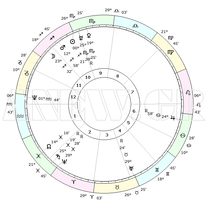| | ΘΕΣΕΙΣ ΠΛΑΝΗΤΩΝ ΑΣΤΡΟΛΟΓΙΚΟΥ ΧΑΡΤΗ ΤΗΣ ΣΤΙΓΜΗΣ ΑΥΤΗΣ | | | | Πλανήτης | Ζώδιο | Μοίρες | Δεκαήμ. | Σε οίκο | Απόκλιση | | Ακμές των οίκων | | Ηλιος | Τοξότης | 00°18' | Πρώτο | 11 | 20 S 12 | | 1ος | 13°18' | Αιγόκερως | | Σελήνη | Τοξότης | 22°50' | Τρίτο | 12 | 28 S 11 | | 2ος | 23°51' | Υδροχόος | | Ερμής | Σκορπιός | 25°42'R | Τρίτο | 10 | 18 S 02 | | 3ος | 04°02' | Κριός | | Αφροδίτη | Σκορπιός | 19°21' | Δεύτερο | 10 | 16 S 36 | | 4ος | 05°36' | Ταύρος | | Αρης | Τοξότης | 12°56' | Δεύτερο | 11 | 22 S 56 | | 5ος | 00°01' | Δίδυμοι | | Δίας | Καρκίνος | 24°58'R | Τρίτο | 7 | 21 N 16 | | 6ος | 21°16' | Δίδυμοι | | Κρόνος | Ιχθείς | 25°19'R | Τρίτο | 2 | 04 S 04 | | 7ος | 13°18' | Καρκίνος | | Ουρανός | Ταύρος | 29°24'R | Τρίτο | 4 | 19 N 49 | | 8ος | 23°51' | Λέων | | Ποσειδώνας | Ιχθείς | 29°28'R | Τρίτο | 2 | 01 S 28 | | 9ος | 04°02' | Ζυγός | | Πλούτωνας | Υδροχόος | 01°44' | Πρώτο | 1 | 23 S 26 | | 10ος | 05°36' | Σκορπιός | | Β. Δεσμός | Ιχθείς | 14°16' | Δεύτερο | 2 | 06 S 11 | | 11ος | 00°01' | Τοξότης | | Ωροσκόπος | Αιγόκερως | 13°18' | Δεύτερο | | | 12ος | 21°16' | Τοξότης | | Μεσουράνημα | Σκορπιός | 05°36' | Πρώτο | | | |