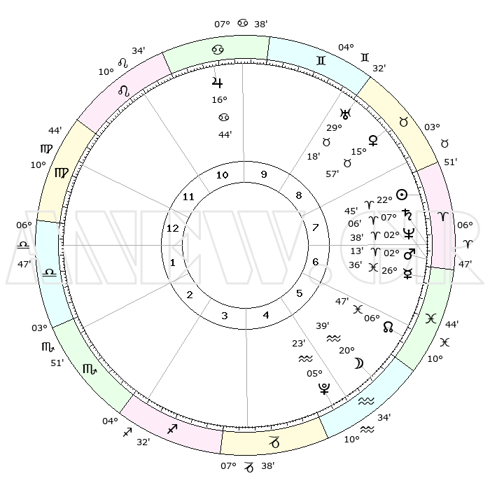 | | ΘΕΣΕΙΣ ΠΛΑΝΗΤΩΝ ΑΣΤΡΟΛΟΓΙΚΟΥ ΧΑΡΤΗ ΤΗΣ ΣΤΙΓΜΗΣ ΑΥΤΗΣ | | | | Πλανήτης | Ζώδιο | Μοίρες | Δεκαήμ. | Σε οίκο | Απόκλιση | | Ακμές των οίκων | | Ηλιος | Κριός | 21°37' | Τρίτο | 9 | 08 N 26 | | 1ος | 23°13' | Λέων | | Σελήνη | Υδροχόος | 06°14' | Πρώτο | 6 | 21 S 21 | | 2ος | 16°22' | Παρθένος | | Ερμής | Ιχθείς | 25°06' | Τρίτο | 8 | 04 S 11 | | 3ος | 14°22' | Ζυγός | | Αφροδίτη | Ταύρος | 14°33' | Δεύτερο | 9 | 16 N 13 | | 4ος | 17°09' | Σκορπιός | | Αρης | Κριός | 01°19' | Πρώτο | 8 | 00 S 24 | | 5ος | 21°49' | Τοξότης | | Δίας | Καρκίνος | 16°37' | Δεύτερο | 11 | 22 N 46 | | 6ος | 24°23' | Αιγόκερως | | Κρόνος | Κριός | 06°58' | Πρώτο | 8 | 00 N 48 | | 7ος | 23°13' | Υδροχόος | | Ουρανός | Ταύρος | 29°15' | Τρίτο | 10 | 19 N 49 | | 8ος | 16°22' | Ιχθείς | | Ποσειδώνας | Κριός | 02°36' | Πρώτο | 8 | 00 S 10 | | 9ος | 14°22' | Κριός | | Πλούτωνας | Υδροχόος | 05°22' | Πρώτο | 6 | 22 S 47 | | 10ος | 17°09' | Ταύρος | | Β. Δεσμός | Ιχθείς | 06°51' | Πρώτο | 7 | 09 S 00 | | 11ος | 21°49' | Δίδυμοι | | Ωροσκόπος | Λέων | 23°13' | Τρίτο | | | 12ος | 24°23' | Καρκίνος | | Μεσουράνημα | Ταύρος | 17°09' | Δεύτερο | | | |
