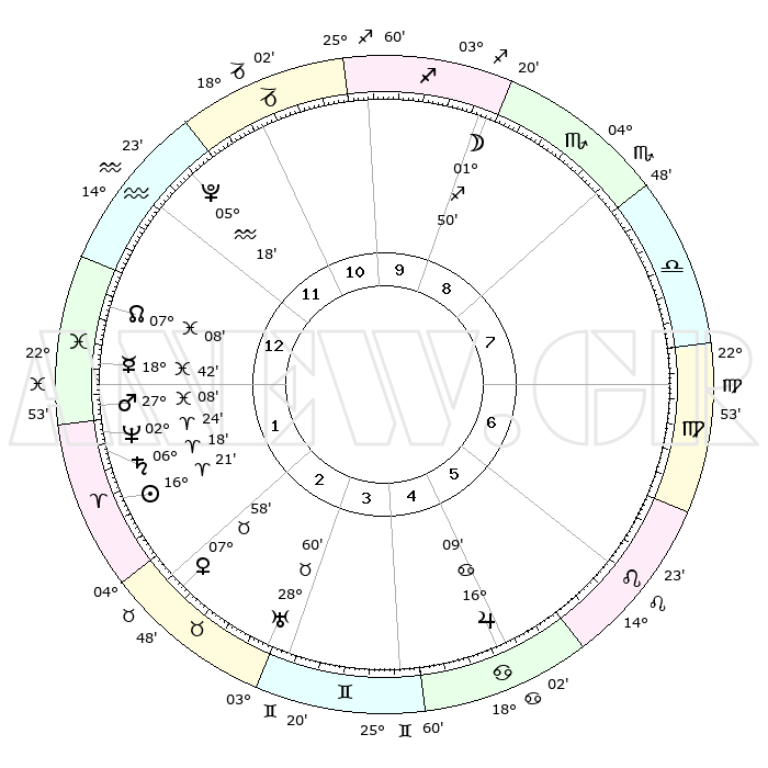 | | ΘΕΣΕΙΣ ΠΛΑΝΗΤΩΝ ΑΣΤΡΟΛΟΓΙΚΟΥ ΧΑΡΤΗ ΤΗΣ ΣΤΙΓΜΗΣ ΑΥΤΗΣ | | | | Πλανήτης | Ζώδιο | Μοίρες | Δεκαήμ. | Σε οίκο | Απόκλιση | | Ακμές των οίκων | | Ηλιος | Κριός | 16°17' | Δεύτερο | 2 | 06 N 24 | | 1ος | 19°33' | Υδροχόος | | Σελήνη | Τοξότης | 01°06' | Πρώτο | 9 | 25 S 23 | | 2ος | 05°22' | Κριός | | Ερμής | Ιχθείς | 18°38' | Δεύτερο | 1 | 06 S 19 | | 3ος | 10°10' | Ταύρος | | Αφροδίτη | Ταύρος | 07°53' | Πρώτο | 2 | 13 N 55 | | 4ος | 05°44' | Δίδυμοι | | Αρης | Ιχθείς | 27°05' | Τρίτο | 1 | 02 S 06 | | 5ος | 27°34' | Δίδυμοι | | Δίας | Καρκίνος | 16°09' | Δεύτερο | 5 | 22 N 50 | | 6ος | 20°09' | Καρκίνος | | Κρόνος | Κριός | 06°17' | Πρώτο | 2 | 00 N 32 | | 7ος | 19°33' | Λέων | | Ουρανός | Ταύρος | 28°60' | Τρίτο | 3 | 19 N 46 | | 8ος | 05°22' | Ζυγός | | Ποσειδώνας | Κριός | 02°24' | Πρώτο | 1 | 00 S 15 | | 9ος | 10°10' | Σκορπιός | | Πλούτωνας | Υδροχόος | 05°18' | Πρώτο | 12 | 22 S 47 | | 10ος | 05°44' | Τοξότης | | Β. Δεσμός | Ιχθείς | 07°08' | Πρώτο | 1 | 08 S 53 | | 11ος | 27°34' | Τοξότης | | Ωροσκόπος | Υδροχόος | 19°33' | Δεύτερο | | | 12ος | 20°09' | Αιγόκερως | | Μεσουράνημα | Τοξότης | 05°44' | Πρώτο | | | |