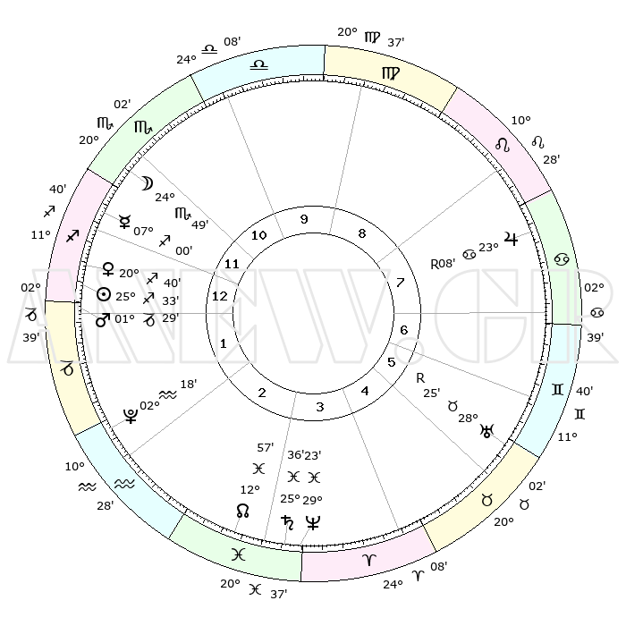 | | ΘΕΣΕΙΣ ΠΛΑΝΗΤΩΝ ΑΣΤΡΟΛΟΓΙΚΟΥ ΧΑΡΤΗ ΤΗΣ ΣΤΙΓΜΗΣ ΑΥΤΗΣ | | | | Πλανήτης | Ζώδιο | Μοίρες | Δεκαήμ. | Σε οίκο | Απόκλιση | | Ακμές των οίκων | | Ηλιος | Τοξότης | 25°28' | Τρίτο | 1 | 23 S 21 | | 1ος | 04°06' | Τοξότης | | Σελήνη | Σκορπιός | 23°44' | Τρίτο | 12 | 23 S 17 | | 2ος | 05°49' | Αιγόκερως | | Ερμής | Τοξότης | 06°53' | Πρώτο | 1 | 20 S 12 | | 3ος | 12°13' | Υδροχόος | | Αφροδίτη | Τοξότης | 20°33' | Τρίτο | 1 | 23 S 01 | | 4ος | 18°19' | Ιχθείς | | Αρης | Αιγόκερως | 01°24' | Πρώτο | 1 | 24 S 13 | | 5ος | 18°48' | Κριός | | Δίας | Καρκίνος | 23°08'R | Τρίτο | 8 | 21 N 39 | | 6ος | 13°18' | Ταύρος | | Κρόνος | Ιχθείς | 25°36' | Τρίτο | 4 | 03 S 52 | | 7ος | 04°06' | Δίδυμοι | | Ουρανός | Ταύρος | 28°25'R | Τρίτο | 6 | 19 N 36 | | 8ος | 05°49' | Καρκίνος | | Ποσειδώνας | Ιχθείς | 29°23' | Τρίτο | 4 | 01 S 29 | | 9ος | 12°13' | Λέων | | Πλούτωνας | Υδροχόος | 02°18' | Πρώτο | 2 | 23 S 19 | | 10ος | 18°19' | Παρθένος | | Β. Δεσμός | Ιχθείς | 12°57' | Δεύτερο | 3 | 06 S 42 | | 11ος | 18°48' | Ζυγός | | Ωροσκόπος | Τοξότης | 04°06' | Πρώτο | | | 12ος | 13°18' | Σκορπιός | | Μεσουράνημα | Παρθένος | 18°19' | Δεύτερο | | | |