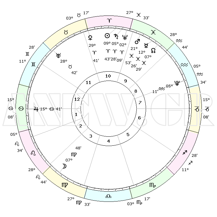 | | ΘΕΣΕΙΣ ΠΛΑΝΗΤΩΝ ΑΣΤΡΟΛΟΓΙΚΟΥ ΧΑΡΤΗ ΤΗΣ ΣΤΙΓΜΗΣ ΑΥΤΗΣ | | | | Πλανήτης | Ζώδιο | Μοίρες | Δεκαήμ. | Σε οίκο | Απόκλιση | | Ακμές των οίκων | | Ηλιος | Κριός | 09°37' | Πρώτο | 11 | 03 N 49 | | 1ος | 14°52' | Δίδυμοι | | Σελήνη | Παρθένος | 06°36' | Πρώτο | 4 | 09 N 16 | | 2ος | 07°09' | Καρκίνος | | Ερμής | Ιχθείς | 12°22' | Δεύτερο | 10 | 07 S 52 | | 3ος | 28°23' | Καρκίνος | | Αφροδίτη | Κριός | 29°35' | Τρίτο | 11 | 10 N 51 | | 4ος | 22°34' | Λέων | | Αρης | Ιχθείς | 21°49' | Τρίτο | 10 | 04 S 13 | | 5ος | 23°47' | Παρθένος | | Δίας | Καρκίνος | 15°40' | Δεύτερο | 2 | 22 N 53 | | 6ος | 03°53' | Σκορπιός | | Κρόνος | Κριός | 05°27' | Πρώτο | 11 | 00 N 13 | | 7ος | 14°52' | Τοξότης | | Ουρανός | Ταύρος | 28°41' | Τρίτο | 12 | 19 N 42 | | 8ος | 07°09' | Αιγόκερως | | Ποσειδώνας | Κριός | 02°09' | Πρώτο | 11 | 00 S 21 | | 9ος | 28°23' | Αιγόκερως | | Πλούτωνας | Υδροχόος | 05°11' | Πρώτο | 9 | 22 S 48 | | 10ος | 22°34' | Υδροχόος | | Β. Δεσμός | Ιχθείς | 07°30' | Πρώτο | 10 | 08 S 45 | | 11ος | 23°46' | Ιχθείς | | Ωροσκόπος | Δίδυμοι | 14°52' | Δεύτερο | | | 12ος | 03°53' | Ταύρος | | Μεσουράνημα | Υδροχόος | 22°34' | Τρίτο | | | |