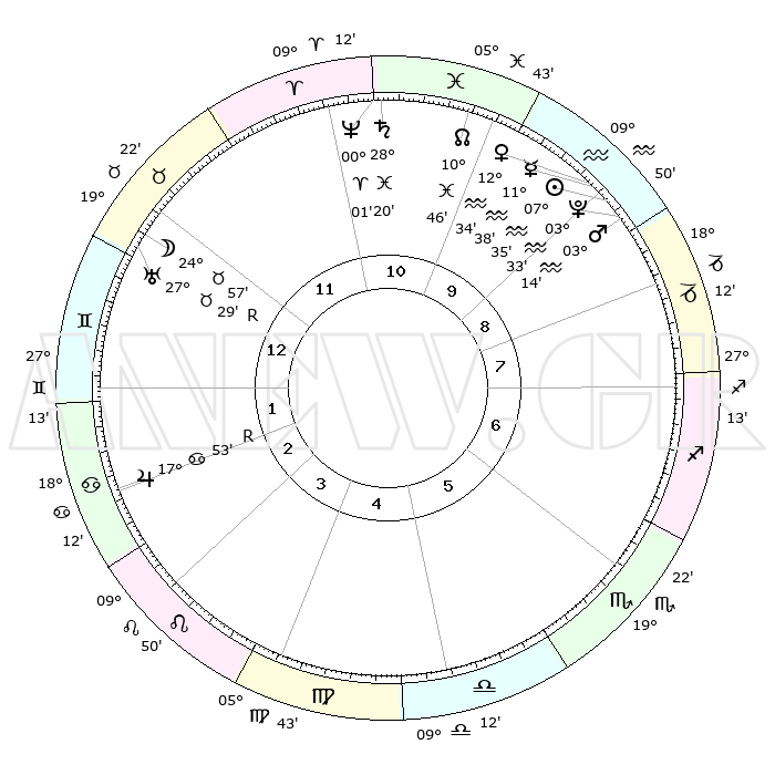 | | ΘΕΣΕΙΣ ΠΛΑΝΗΤΩΝ ΑΣΤΡΟΛΟΓΙΚΟΥ ΧΑΡΤΗ ΤΗΣ ΣΤΙΓΜΗΣ ΑΥΤΗΣ | | | | Πλανήτης | Ζώδιο | Μοίρες | Δεκαήμ. | Σε οίκο | Απόκλιση | | Ακμές των οίκων | | Ηλιος | Υδροχόος | 07°31' | Πρώτο | 9 | 18 S 23 | | 1ος | 02°39' | Δίδυμοι | | Σελήνη | Ταύρος | 24°00' | Τρίτο | 12 | 23 N 38 | | 2ος | 26°56' | Δίδυμοι | | Ερμής | Υδροχόος | 11°31' | Δεύτερο | 10 | 19 S 18 | | 3ος | 18°16' | Καρκίνος | | Αφροδίτη | Υδροχόος | 12°29' | Δεύτερο | 10 | 18 S 17 | | 4ος | 11°14' | Λέων | | Αρης | Υδροχόος | 03°11' | Πρώτο | 9 | 20 S 26 | | 5ος | 10°10' | Παρθένος | | Δίας | Καρκίνος | 17°53'R | Δεύτερο | 2 | 22 N 32 | | 6ος | 19°01' | Ζυγός | | Κρόνος | Ιχθείς | 28°19' | Τρίτο | 11 | 02 S 40 | | 7ος | 02°39' | Τοξότης | | Ουρανός | Ταύρος | 27°29'R | Τρίτο | 12 | 19 N 24 | | 8ος | 26°56' | Τοξότης | | Ποσειδώνας | Κριός | 00°01' | Πρώτο | 11 | 01 S 12 | | 9ος | 18°16' | Αιγόκερως | | Πλούτωνας | Υδροχόος | 03°33' | Πρώτο | 9 | 23 S 03 | | 10ος | 11°14' | Υδροχόος | | Β. Δεσμός | Ιχθείς | 10°46' | Δεύτερο | 11 | 07 S 32 | | 11ος | 10°10' | Ιχθείς | | Ωροσκόπος | Δίδυμοι | 02°39' | Πρώτο | | | 12ος | 19°01' | Κριός | | Μεσουράνημα | Υδροχόος | 11°14' | Δεύτερο | | | |